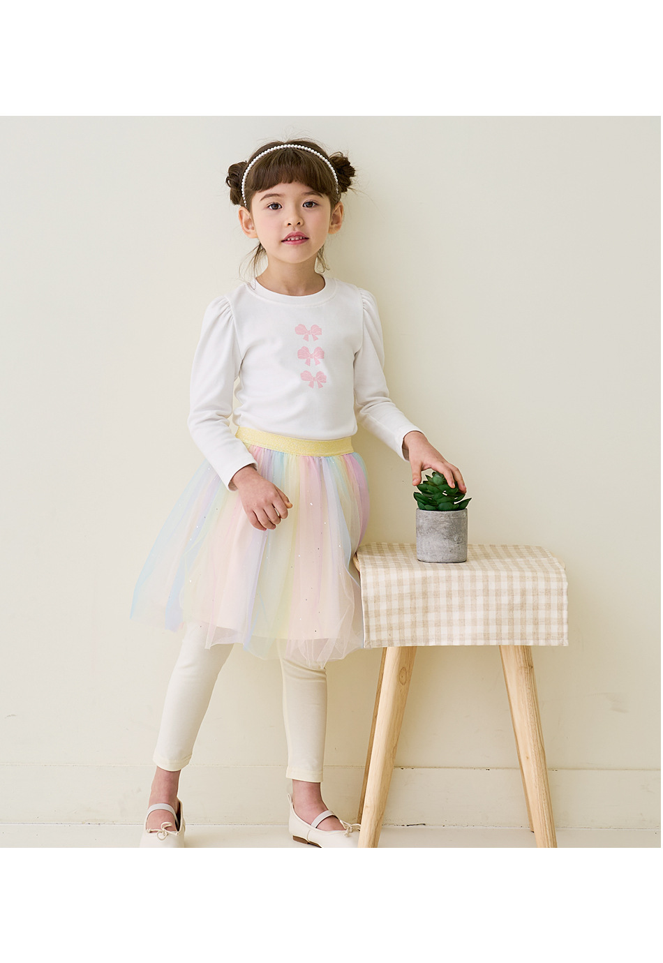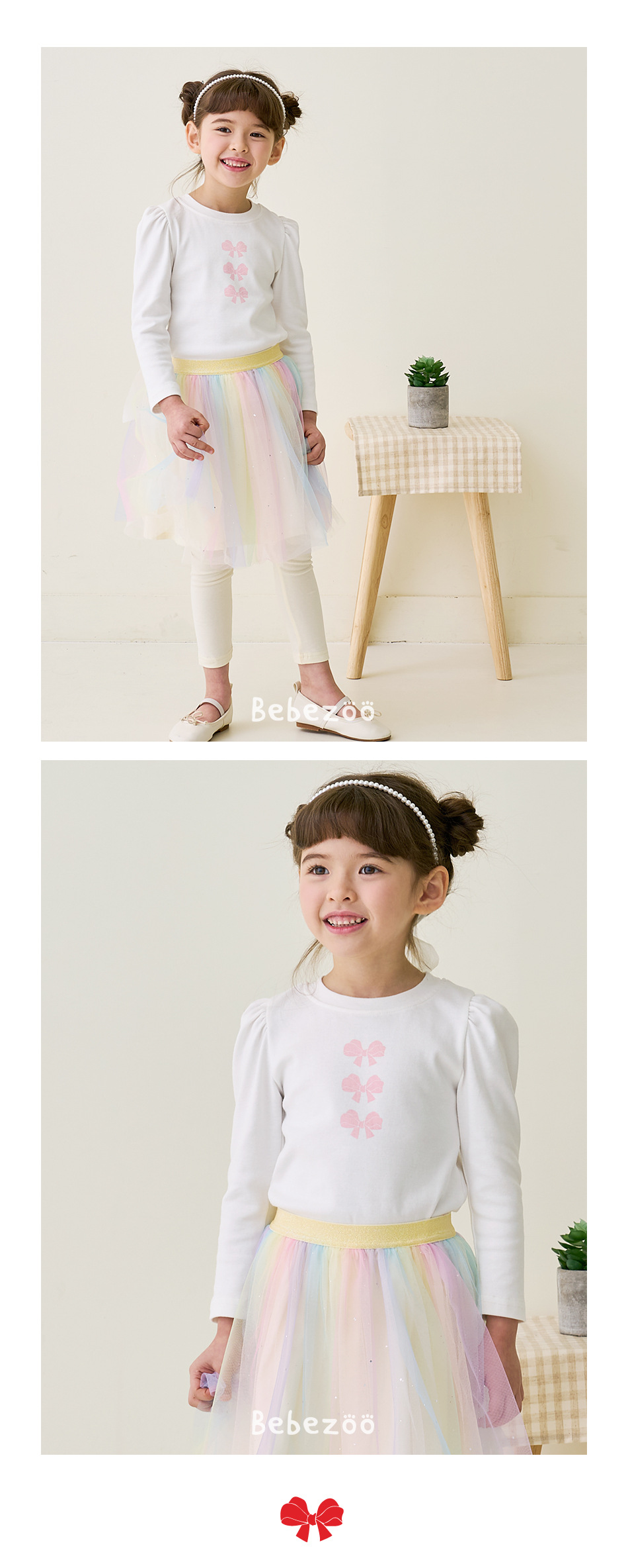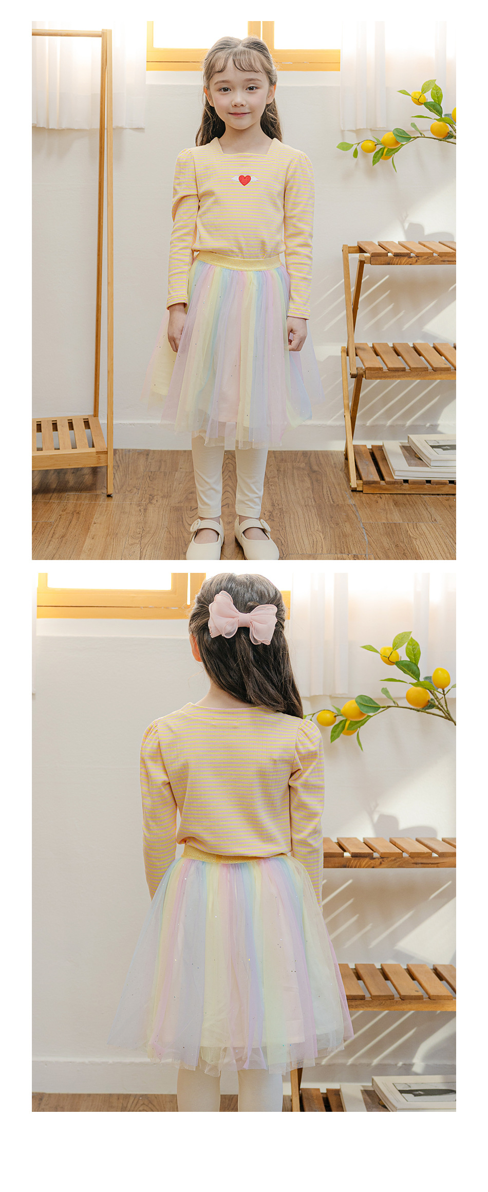 Beibeizu 한국 아동복 2024 봄 소녀 무지개 거즈 스커트 레깅스 귀여운 스커트 슬림 긴 바지스토어 가기