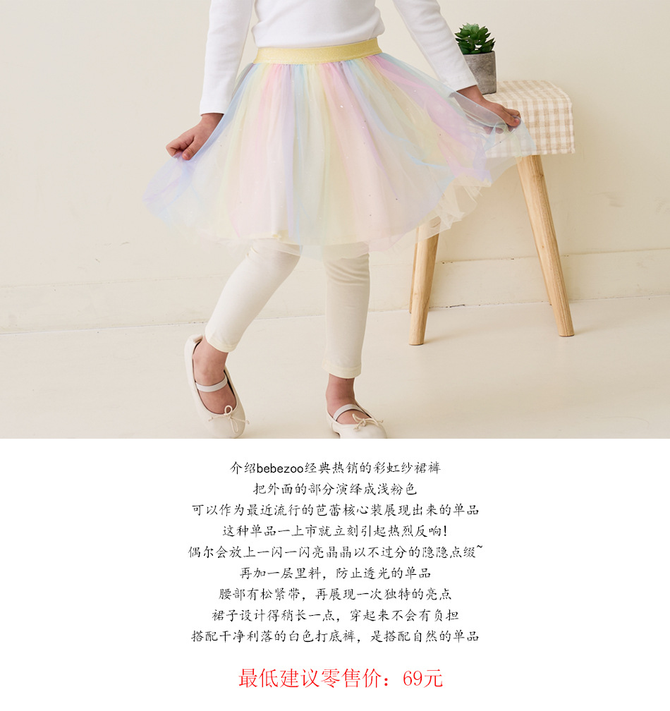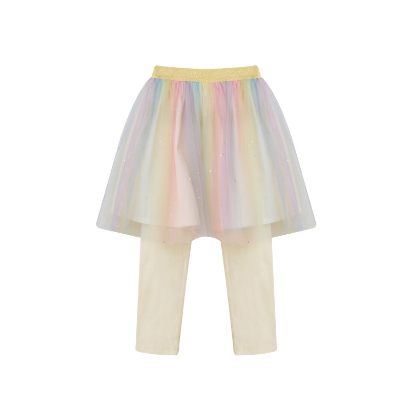 Beibeizu 한국 아동복 2024 봄 소녀 무지개 거즈 스커트 레깅스 귀여운 스커트 슬림 긴 바지
