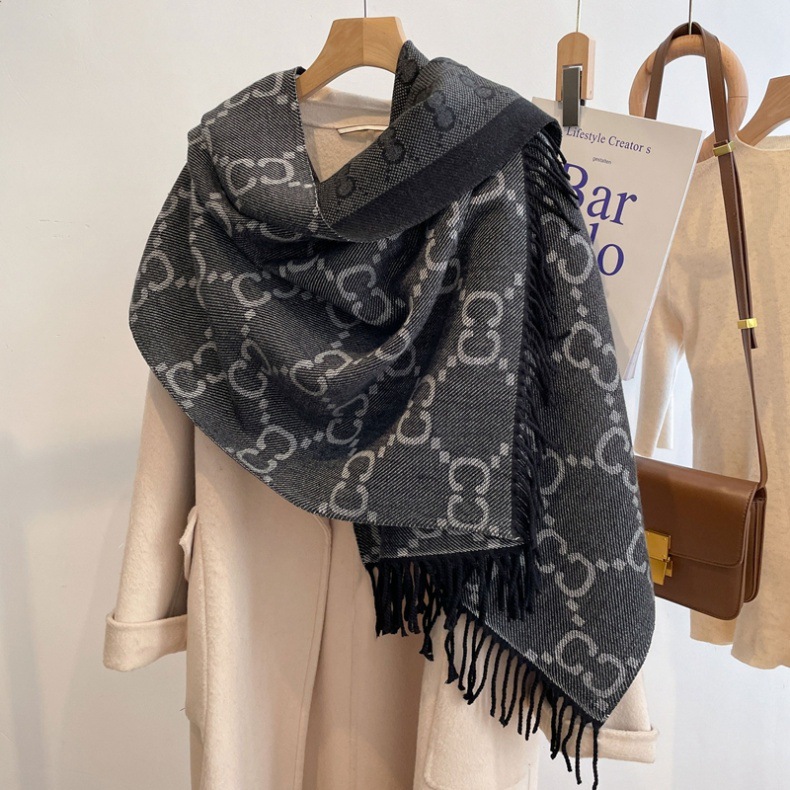패션 브랜드 2024 글자 cc 캐시미어 스카프 여성 유럽과 미국 스타일의 가을과 겨울 두꺼운 따뜻한 양면 스카프 외부 목도리