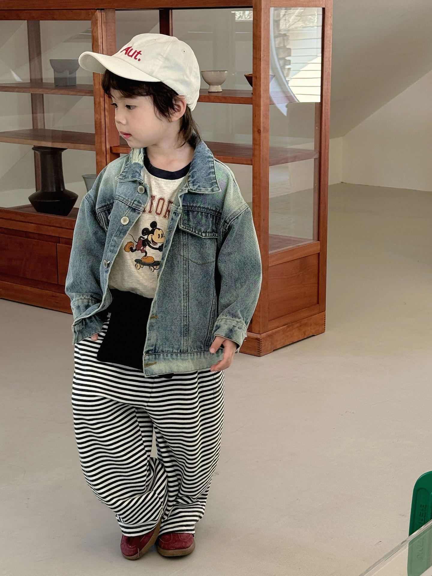 봄 한국 스타일 어린이 캐주얼 데님 재킷 어린이 느슨한 올 매치 옷깃 재킷 트렌디 카디건 탑스토어 가기