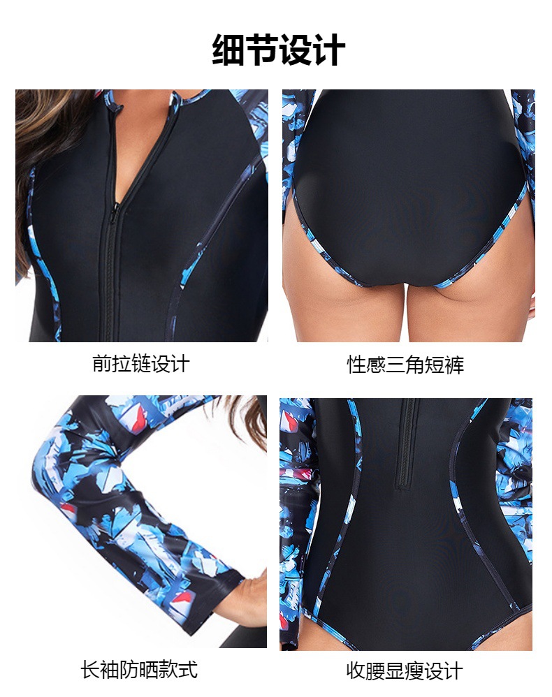 2024 유럽과 미국의 대외 무역 보수적 인 원피스 긴팔 서핑 세트 태양 방지 여성 수영복 온천 다이빙 세트 섹시한 수영복스토어 가기
