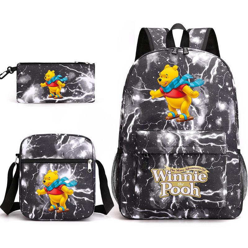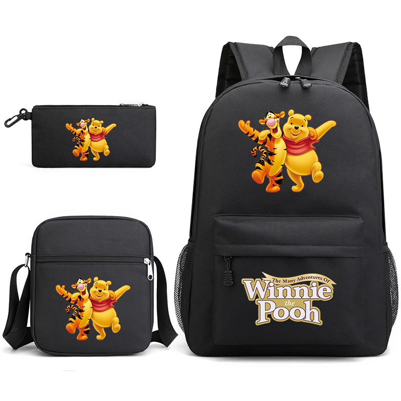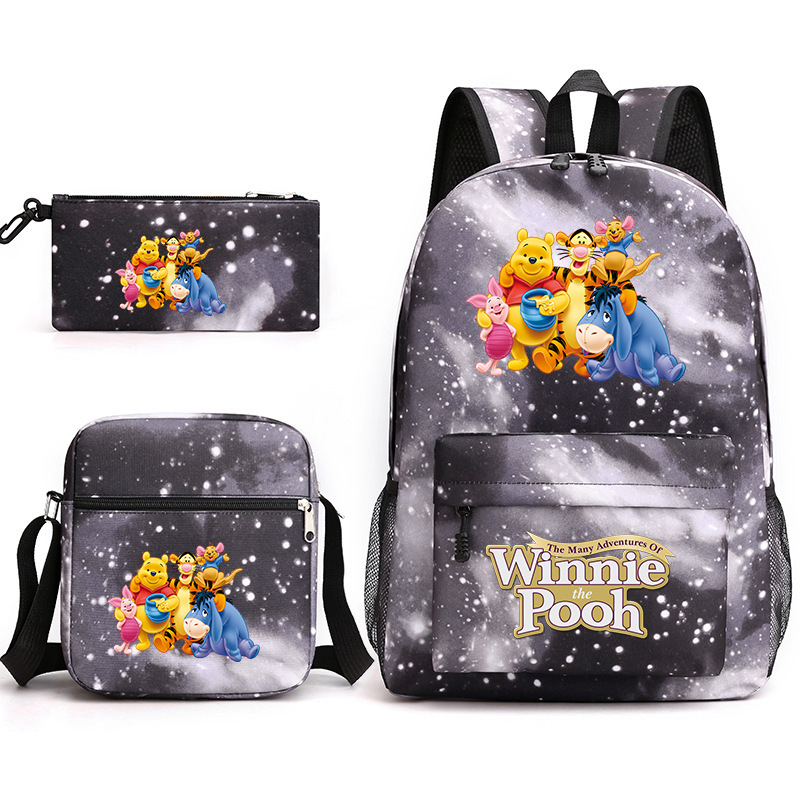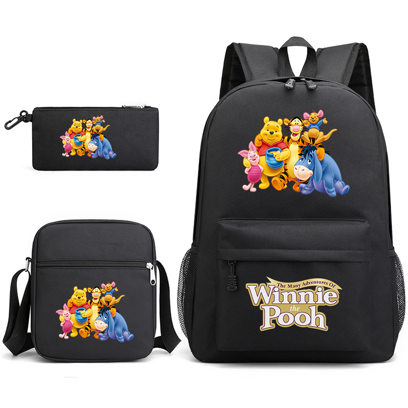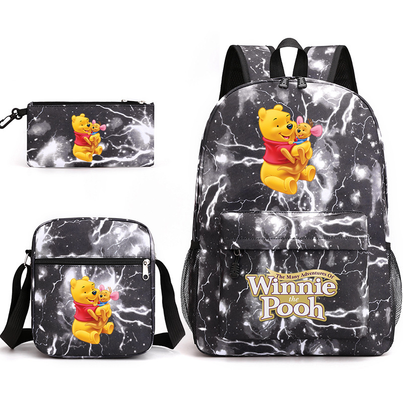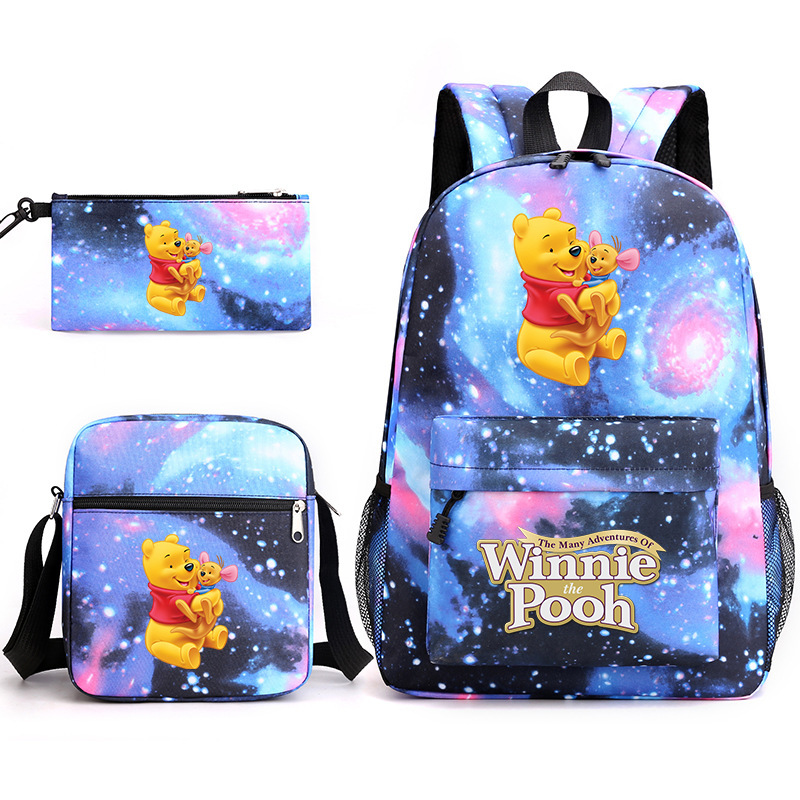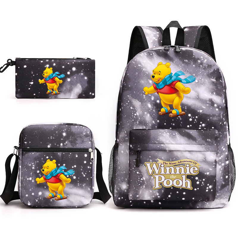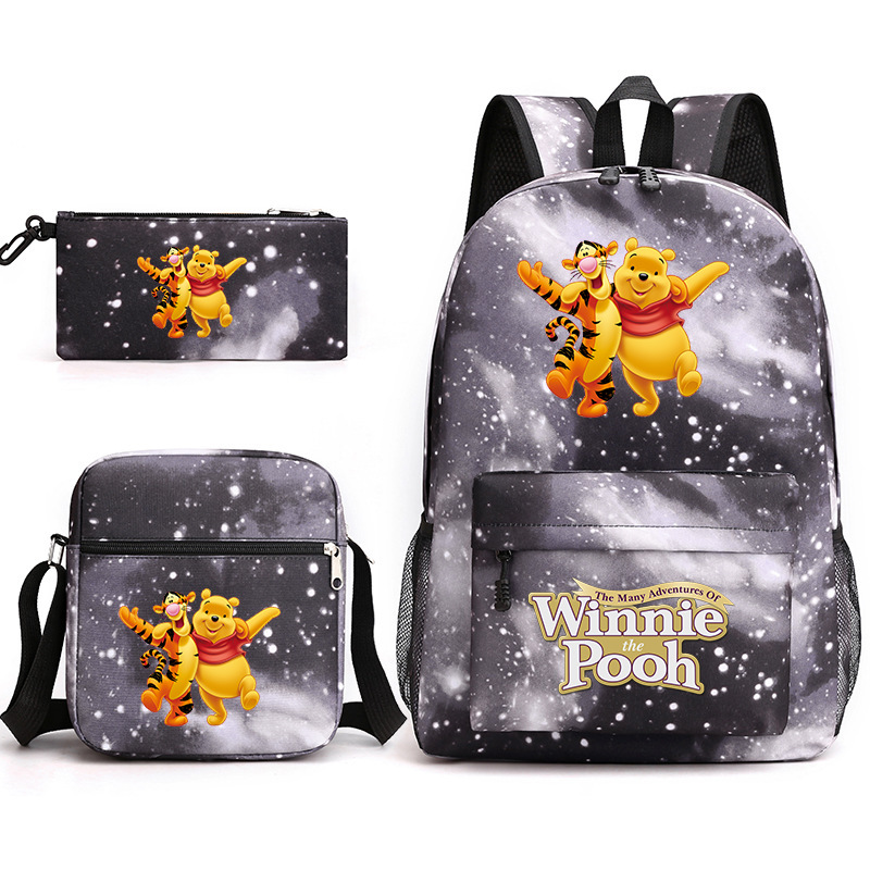3 PC 푸우 베어 학교 가방 어린이 배낭 소년 소녀 학교 가방 매일 배낭 모칠라 어깨 가방 세트