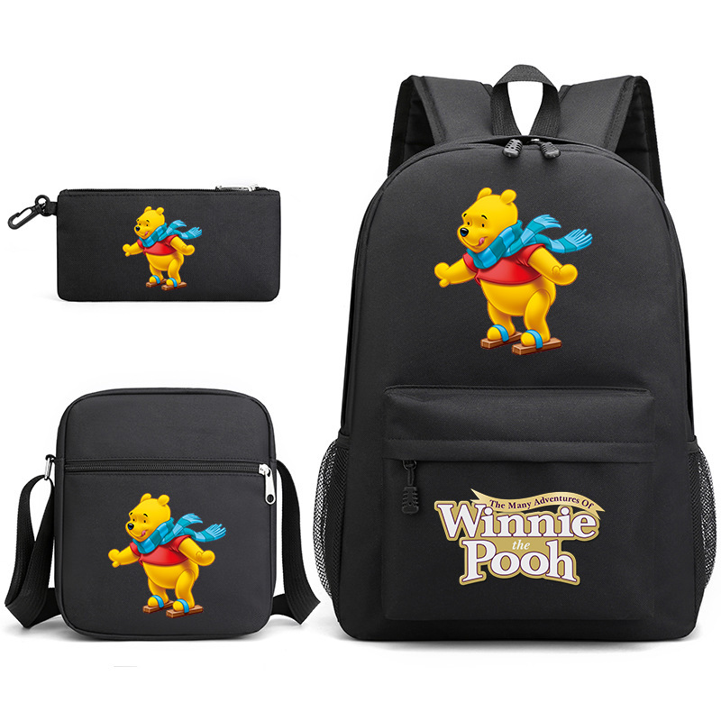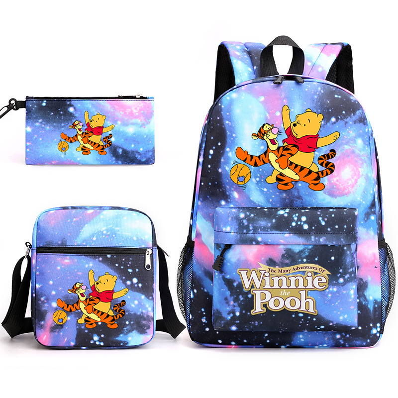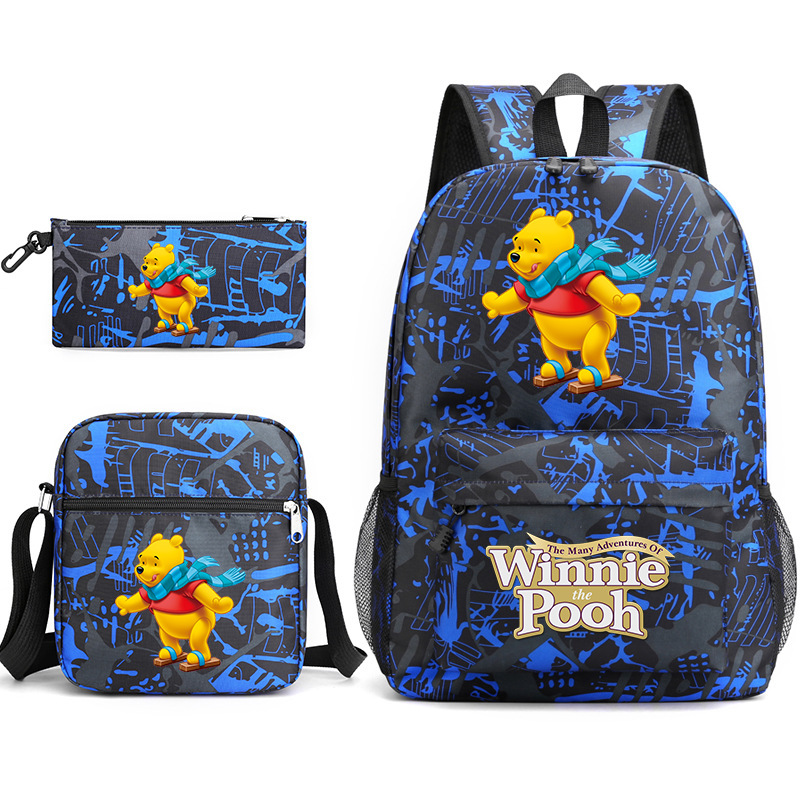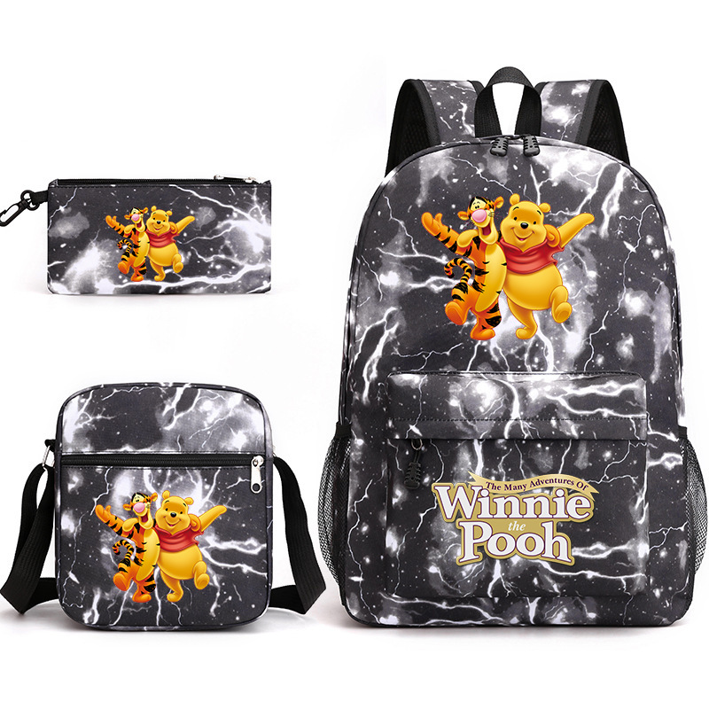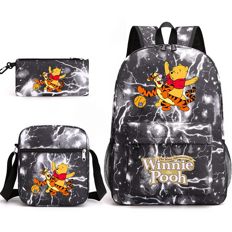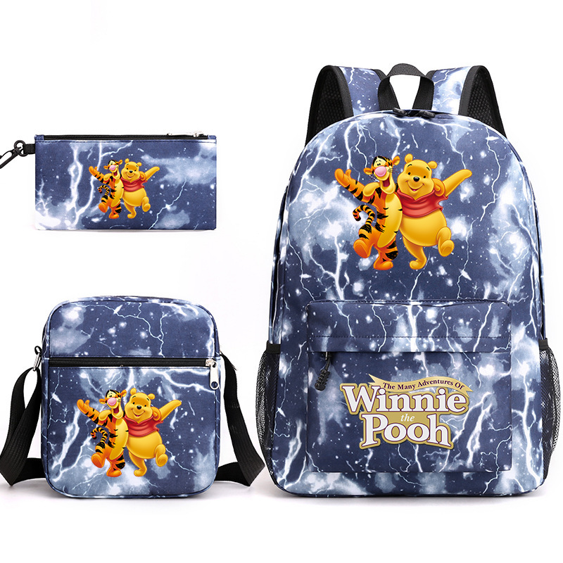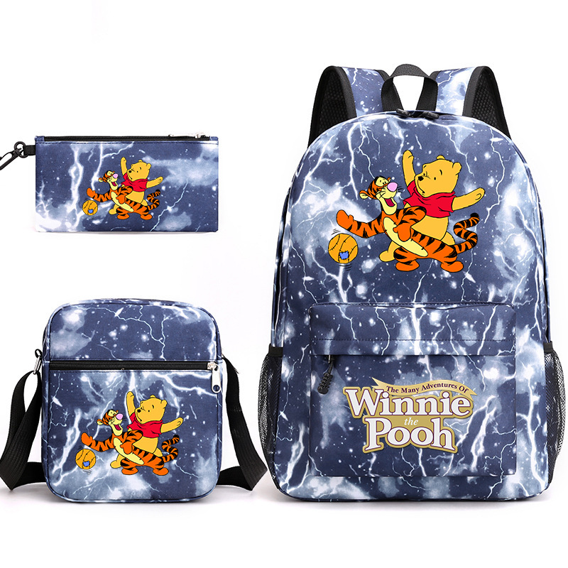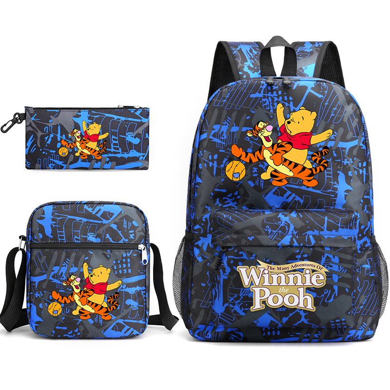 3 PC 푸우 베어 학교 가방 어린이 배낭 소년 소녀 학교 가방 매일 배낭 모칠라 어깨 가방 세트