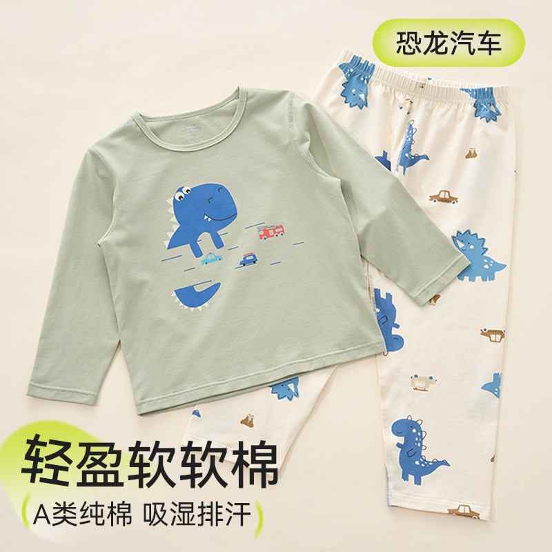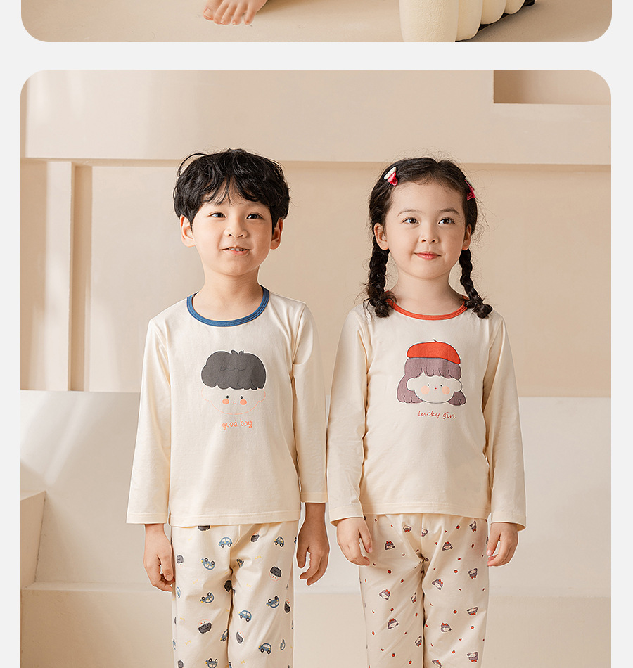어린이 잠옷 순수 면화 소녀 2025 새로운 긴팔 면화 속옷 세트 소년 봄, 가을 얇은 가정 의류스토어 가기