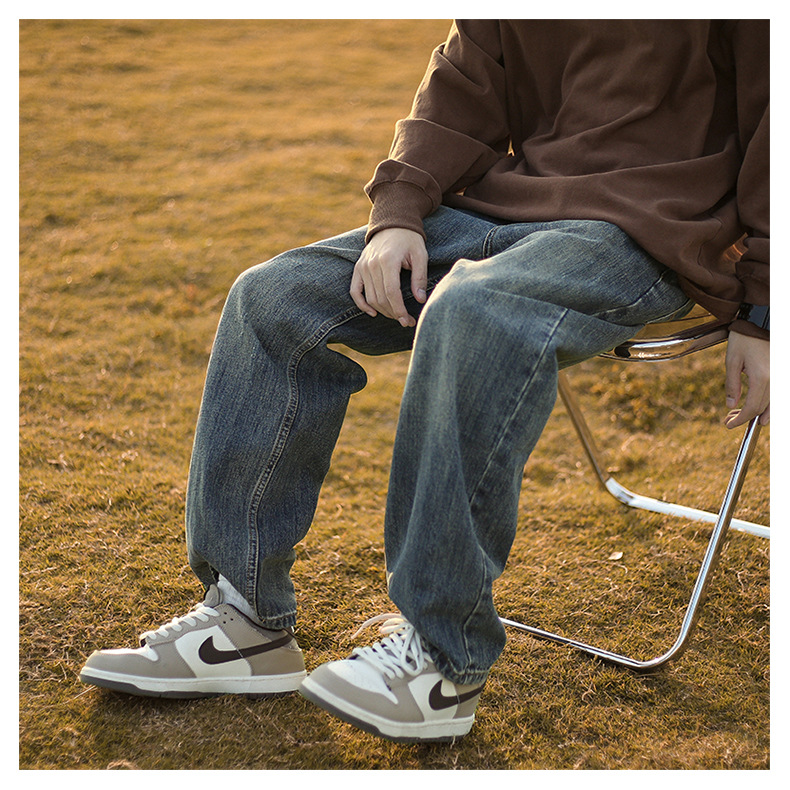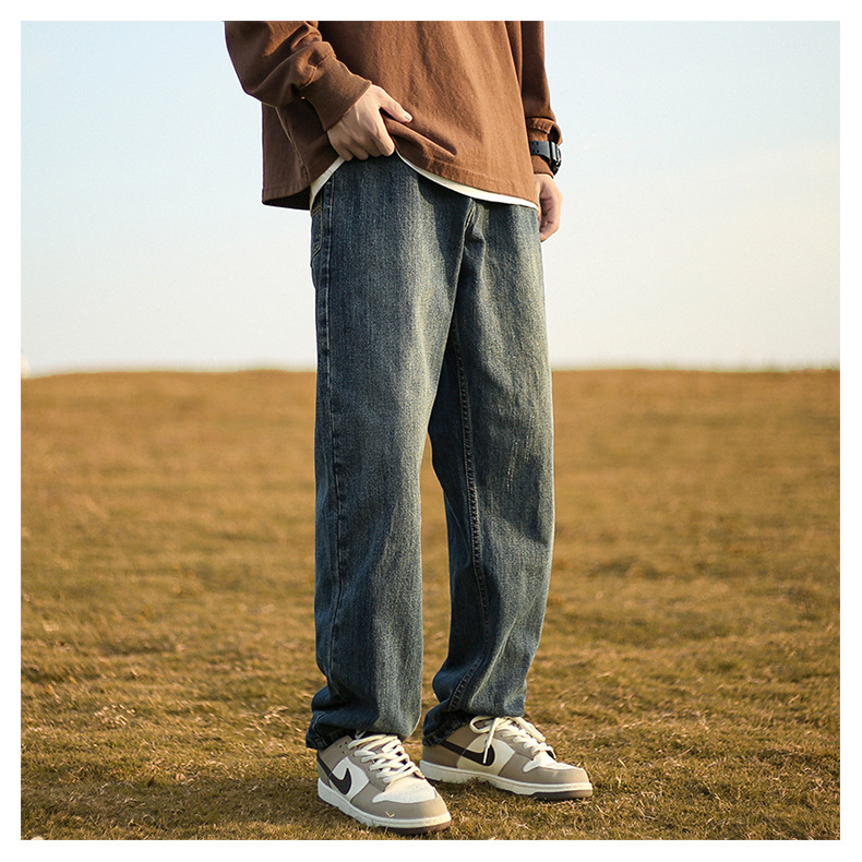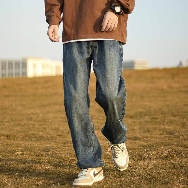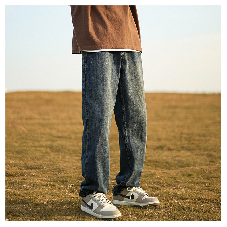 빈티지 세탁 스트레이트 청바지 남성용 봄 미국 패션 브랜드 하이 스트리트 느슨한 넓은 다리 남성용 캐주얼 바지 남성용스토어 가기