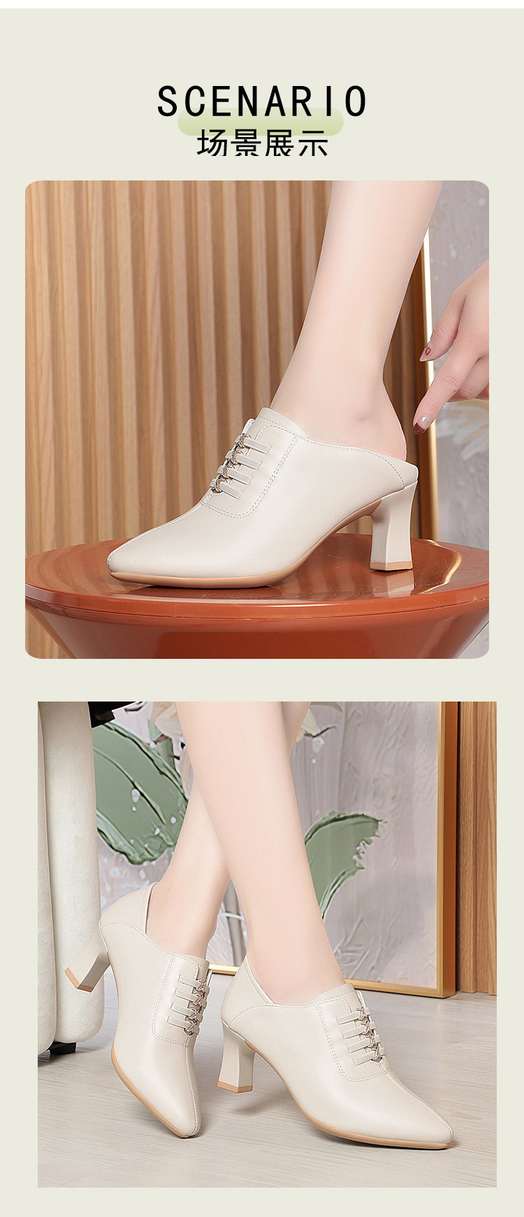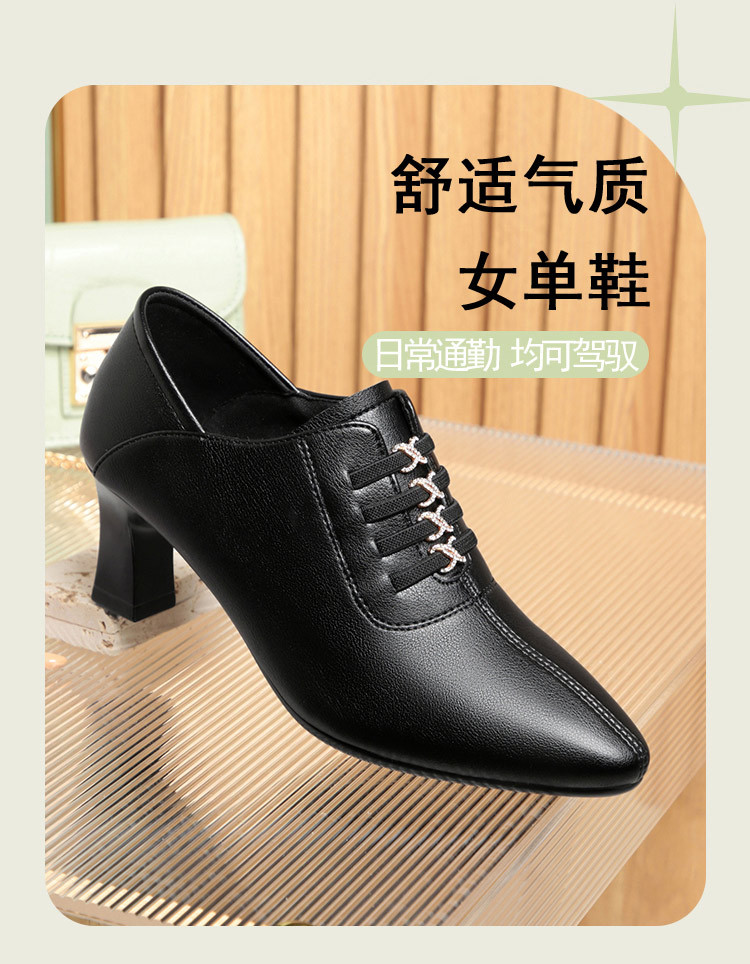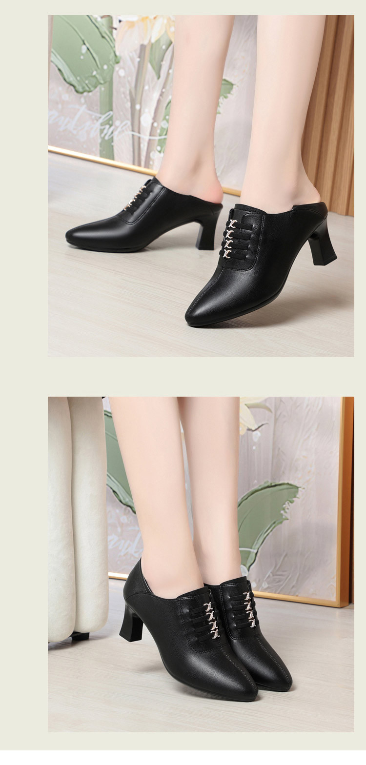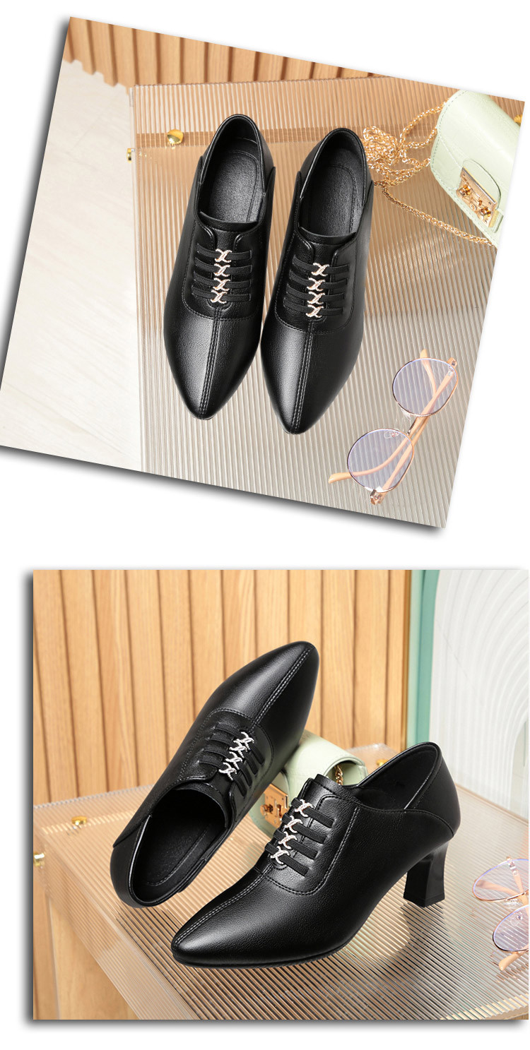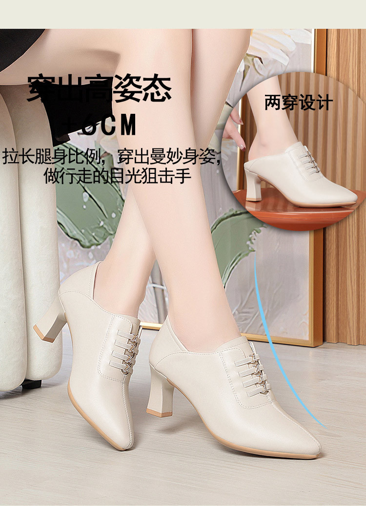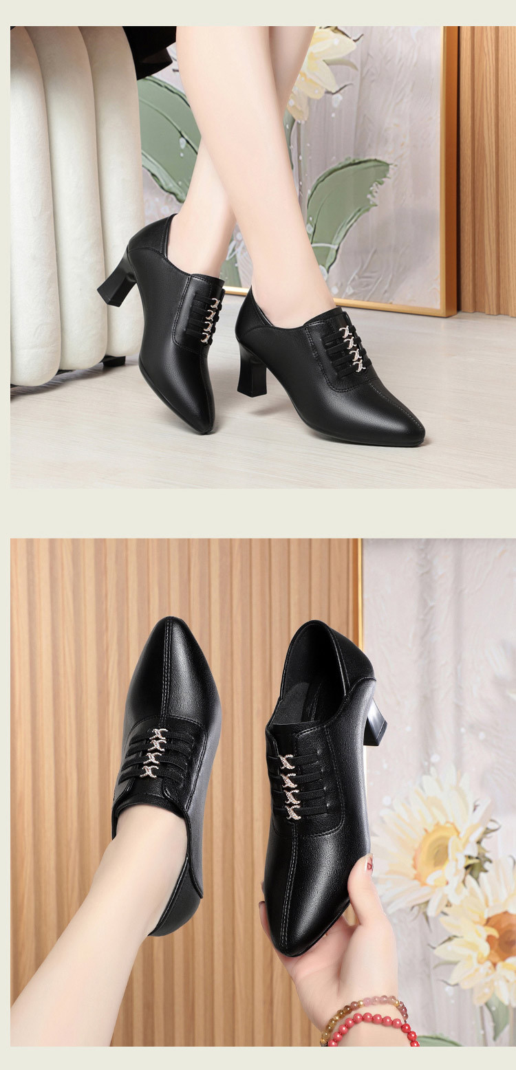 여성을위한 뾰족한 가죽 신발 봄 2024 새로운 우아한 하이힐 여성 신발 깊은 입 피곤하지 않은 발 싱글 레이어 신발 중년 어머니를위한 신발스토어 가기