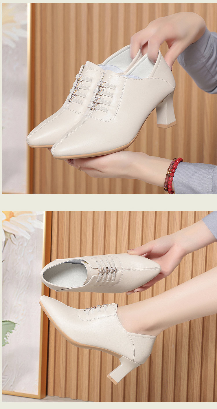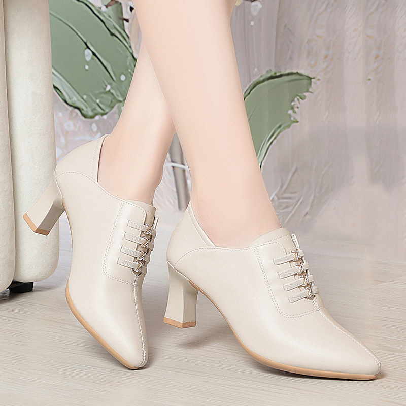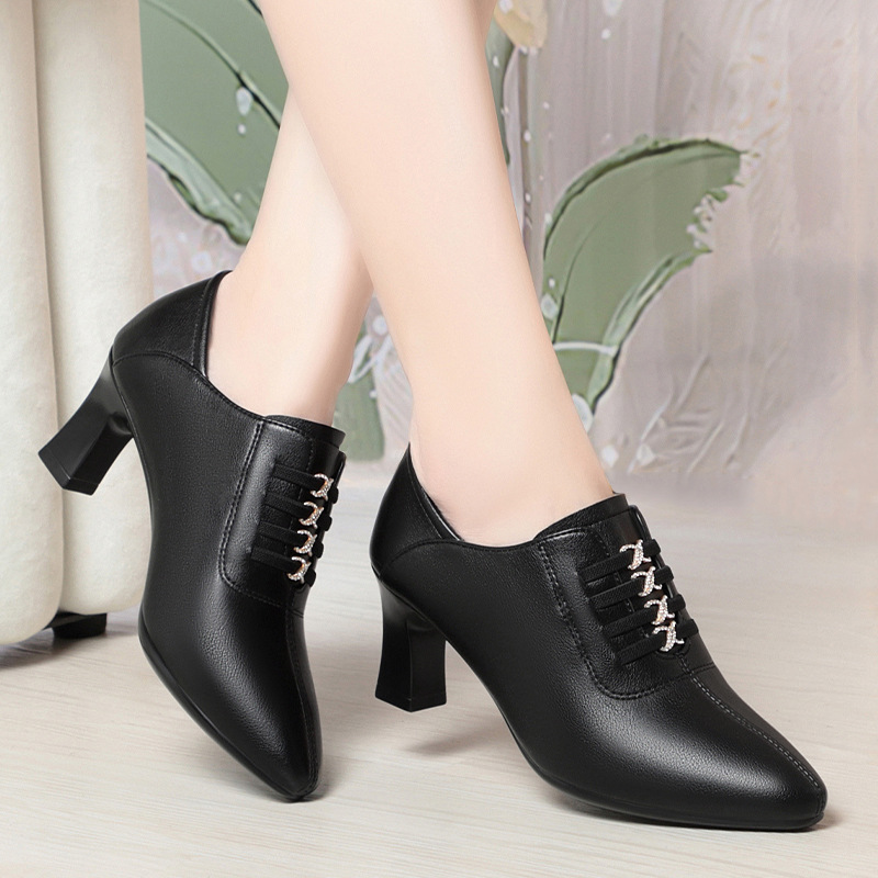 여성을위한 뾰족한 가죽 신발 봄 2024 새로운 우아한 하이힐 여성 신발 깊은 입 피곤하지 않은 발 싱글 레이어 신발 중년 어머니를위한 신발