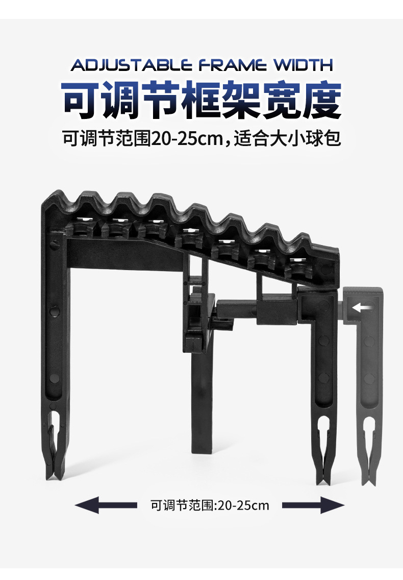 可调节框架宽度,可调节范围20-25cm,适合大小球包