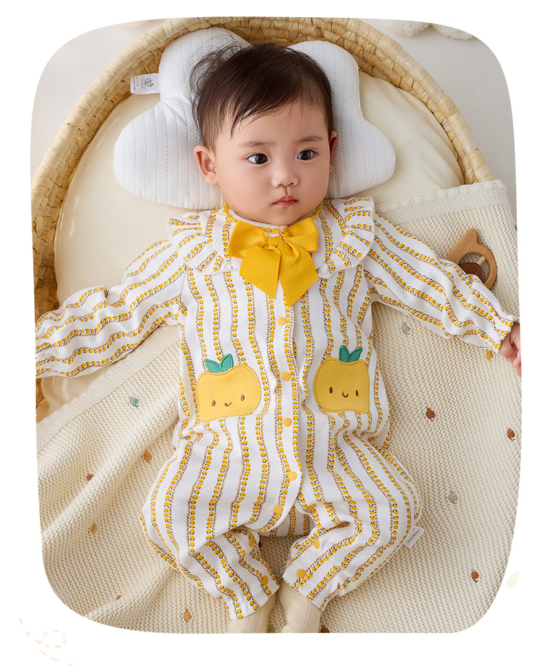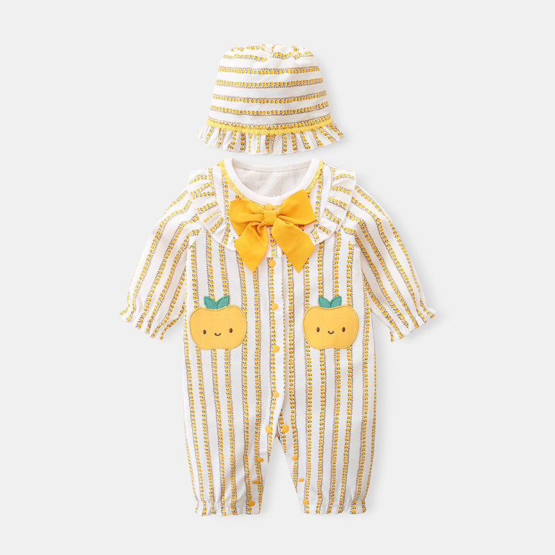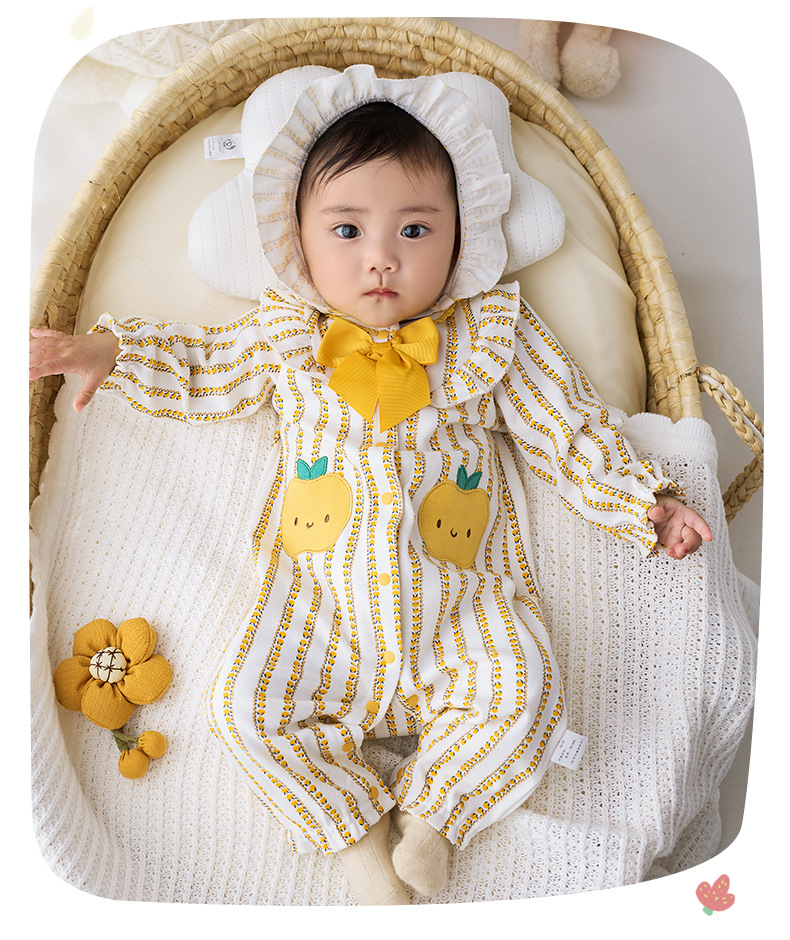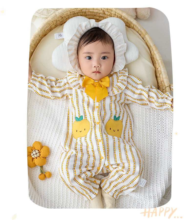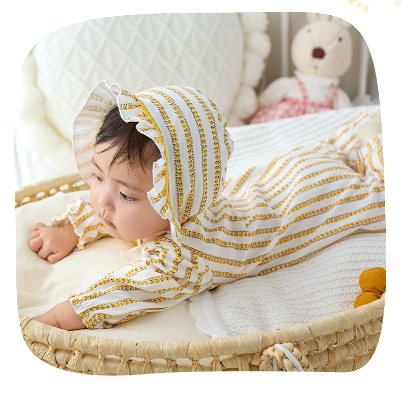 아기 순면 점프수트 2025 봄 신상 원피스 한국 스타일 긴팔 바디수트 모자 포함 봄 가을 바디수트 2916