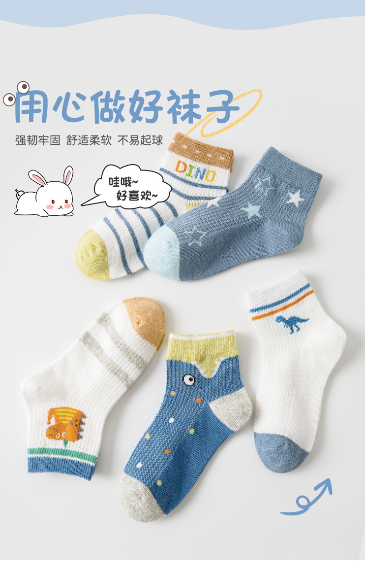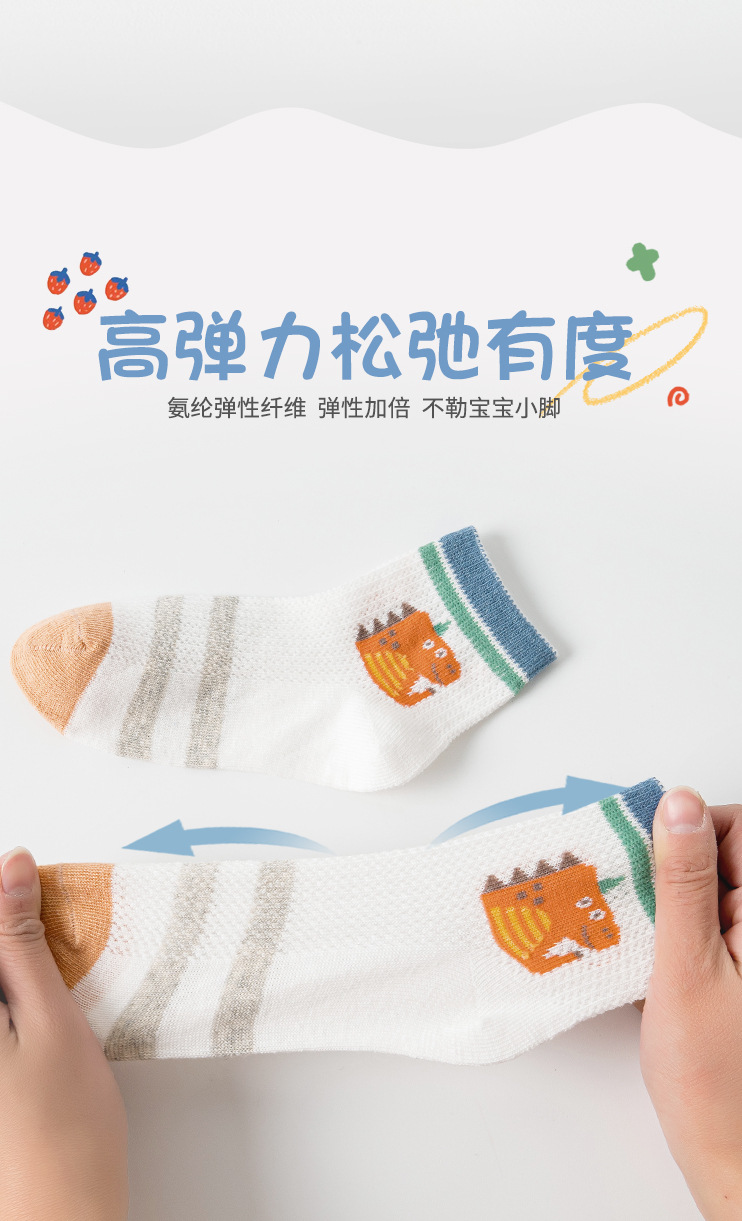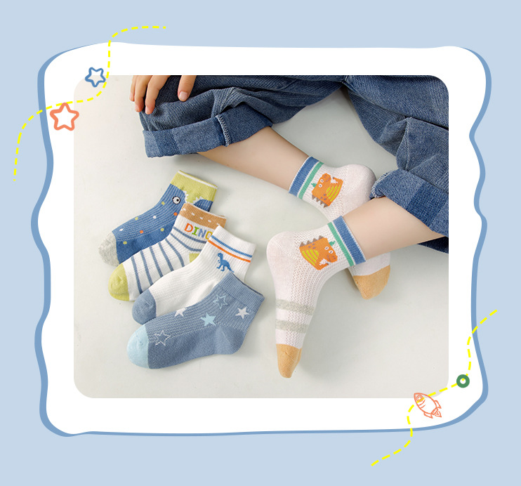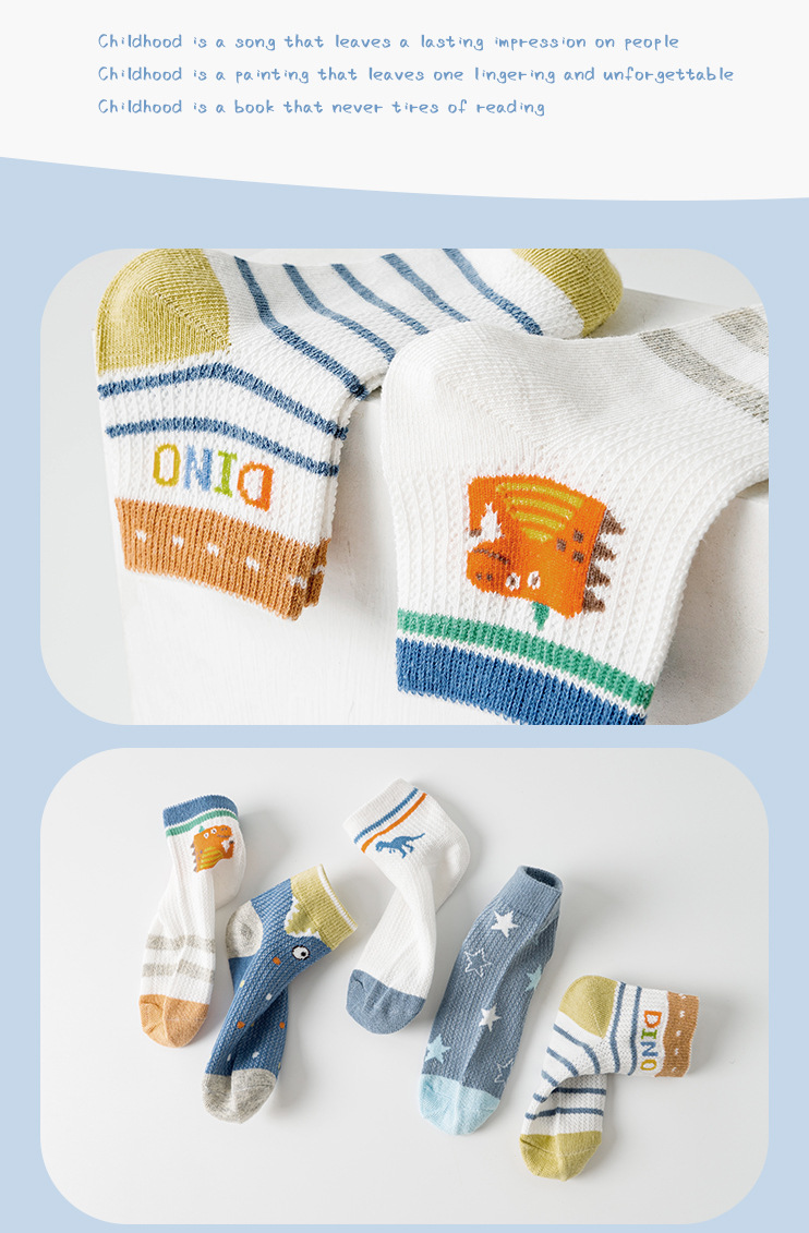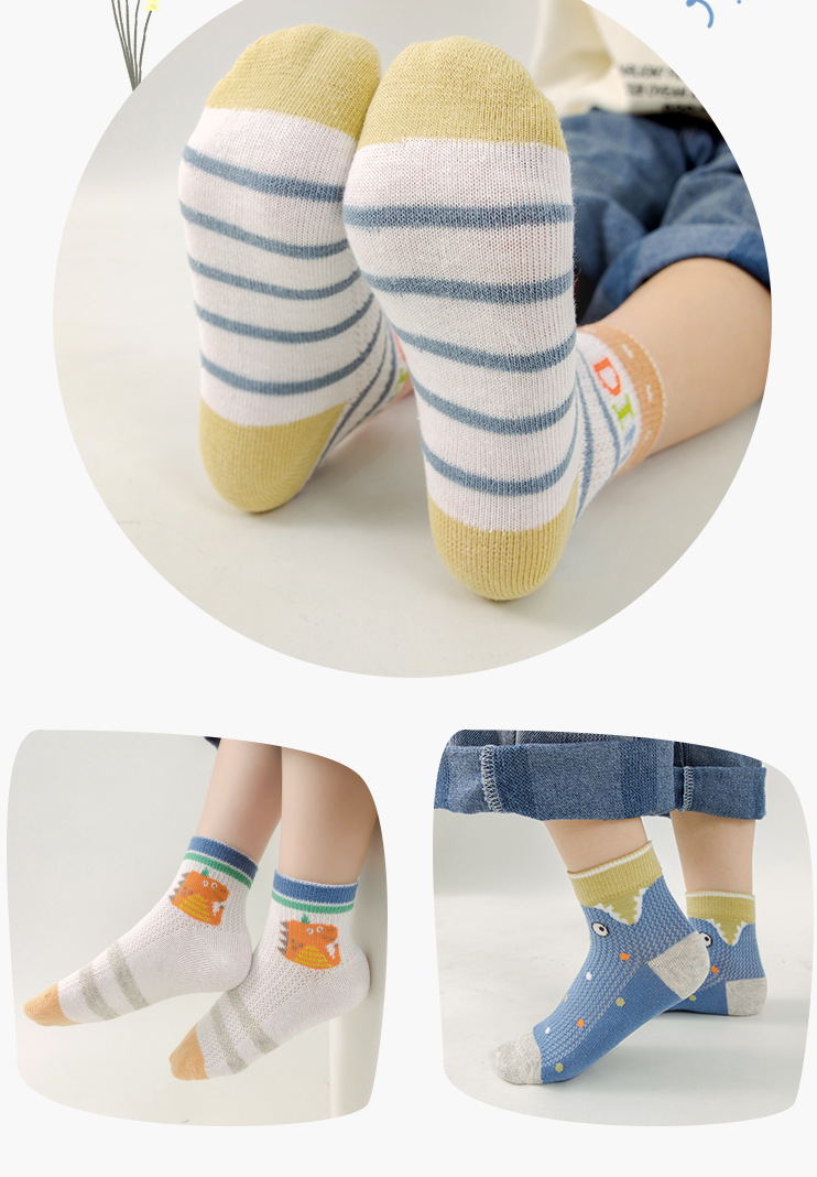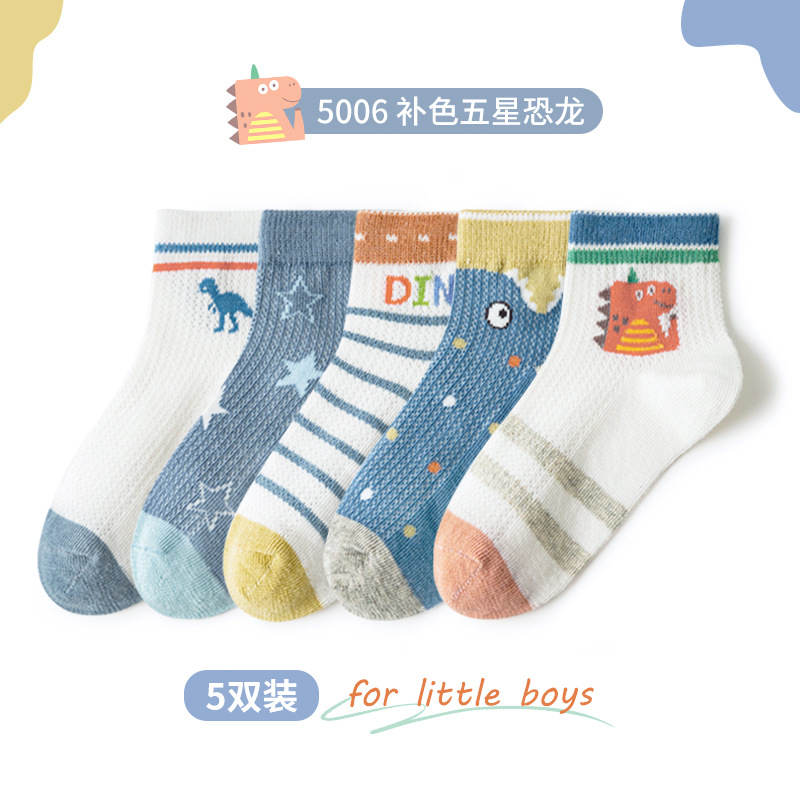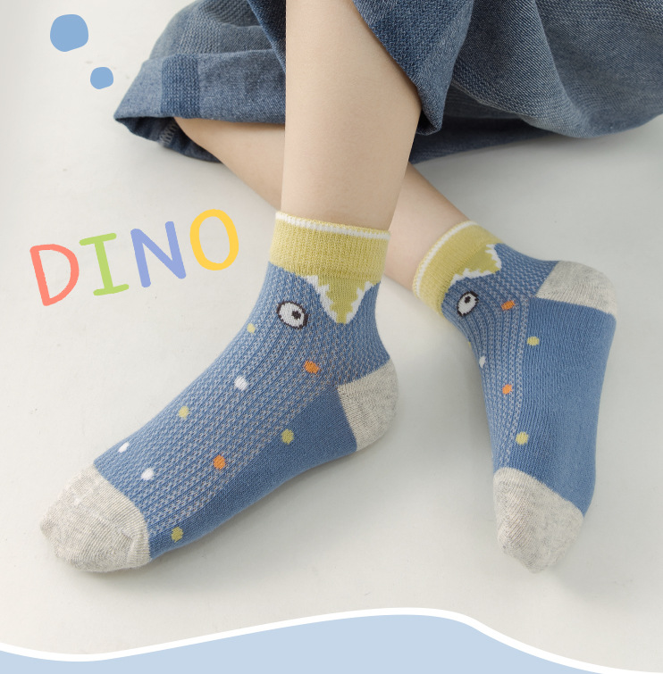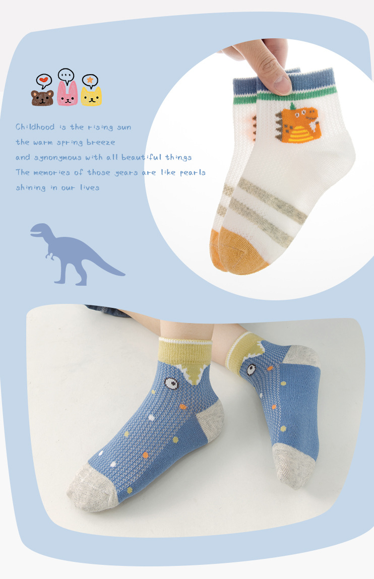 봄과 여름 어린이 양말 새로운 메쉬 통기성 얇은면 양말 만화 공룡 소년과 소녀 양말 학생 양말 한국 스타일