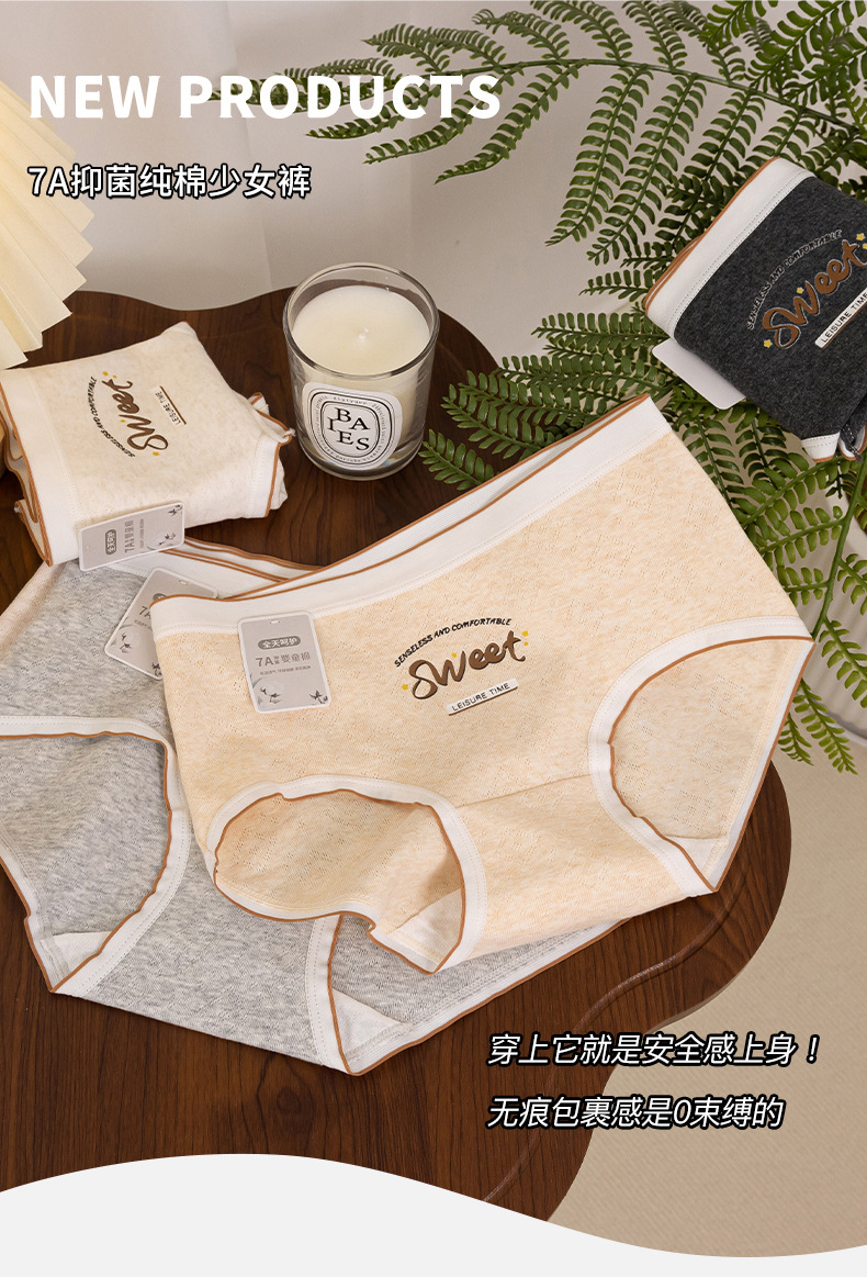 새로운 여성 속옷 여성면 미드 허리 원활한 통기성 7A 항균 100% 코튼 가랑이 귀여운 소녀 브리프