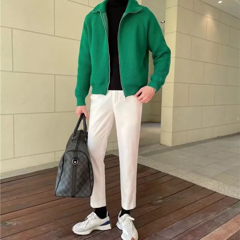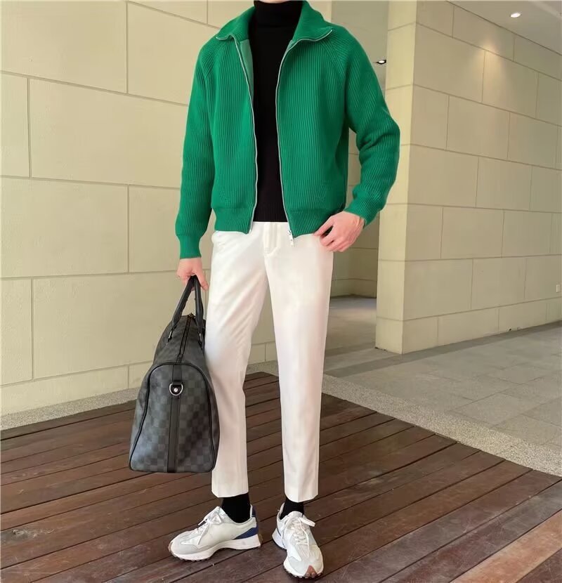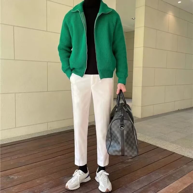 유럽과 미국의 카디건 스웨터 간단한 고급 그린 칼라 니트 카디건 남자 겨울 반 터틀넥 스웨터 남자 코트스토어 가기