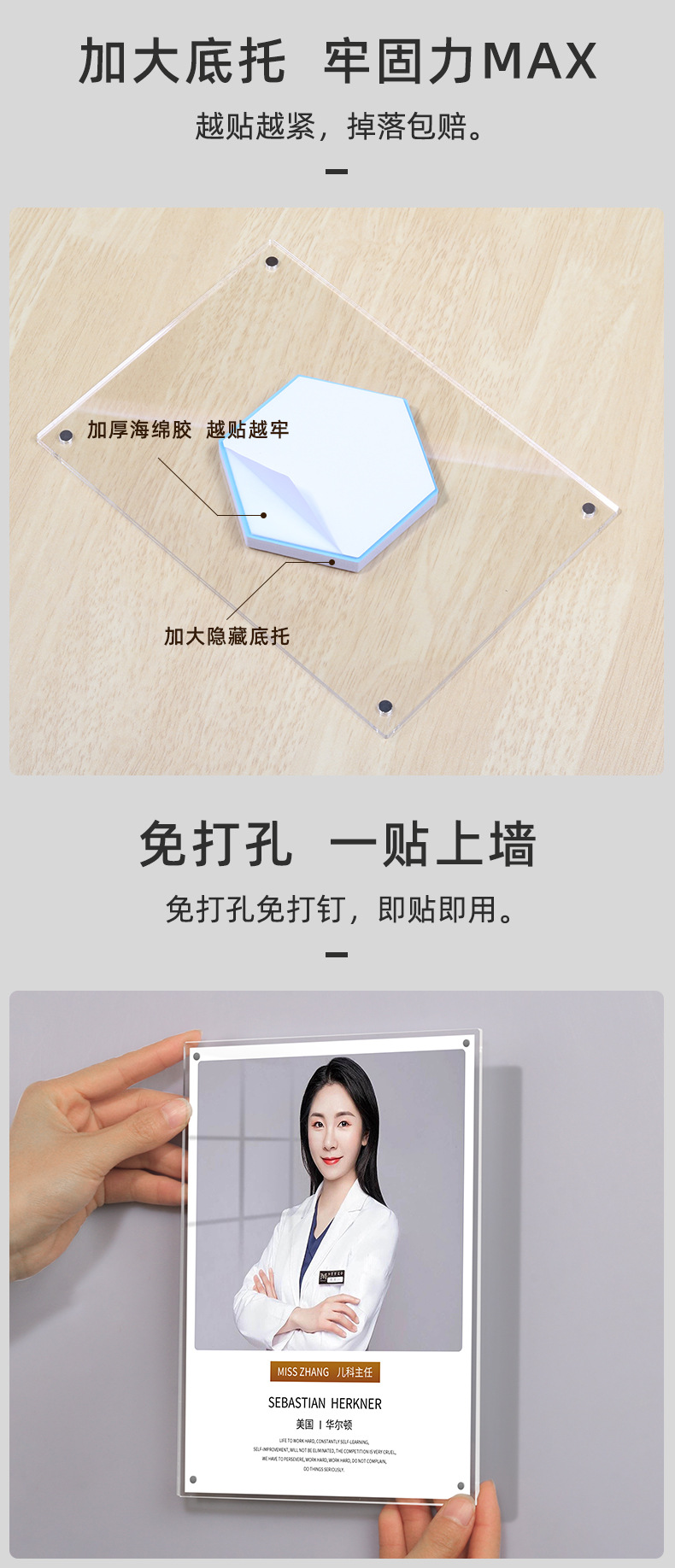 아크릴 a4 정지 사진 프레임 교사 프로필 이미지 벽 펀치없는 벽 교수형 인증서 프레임 투명 특허 디스플레이 프레임