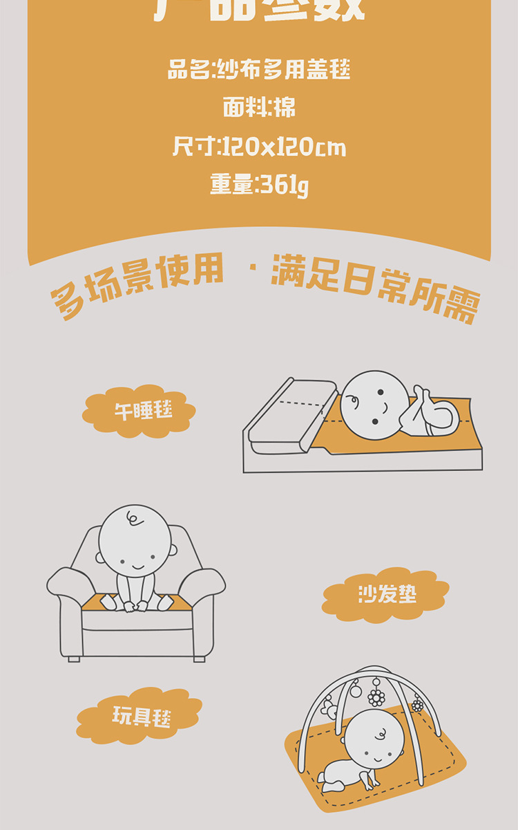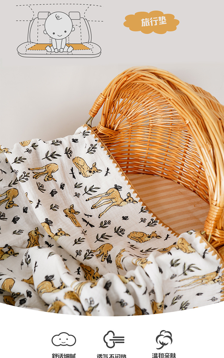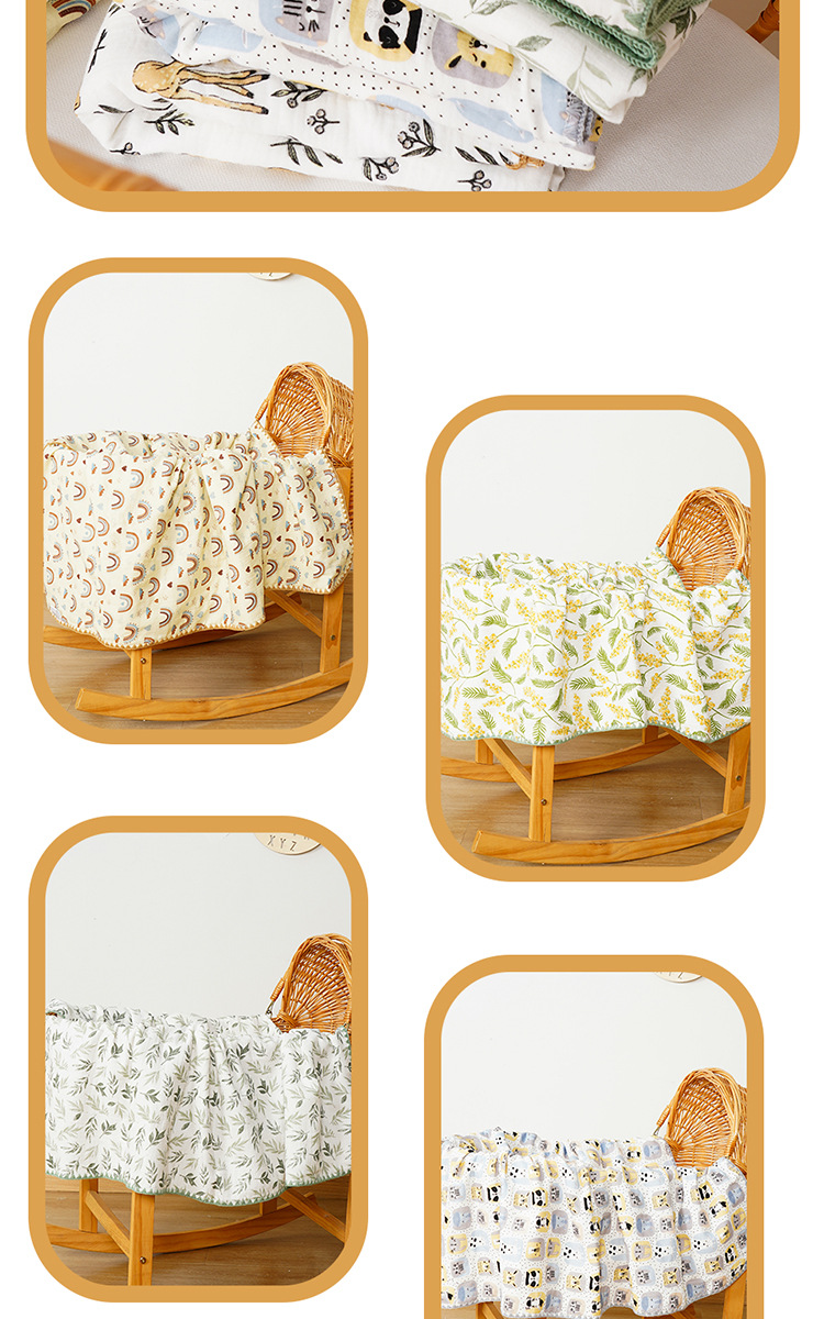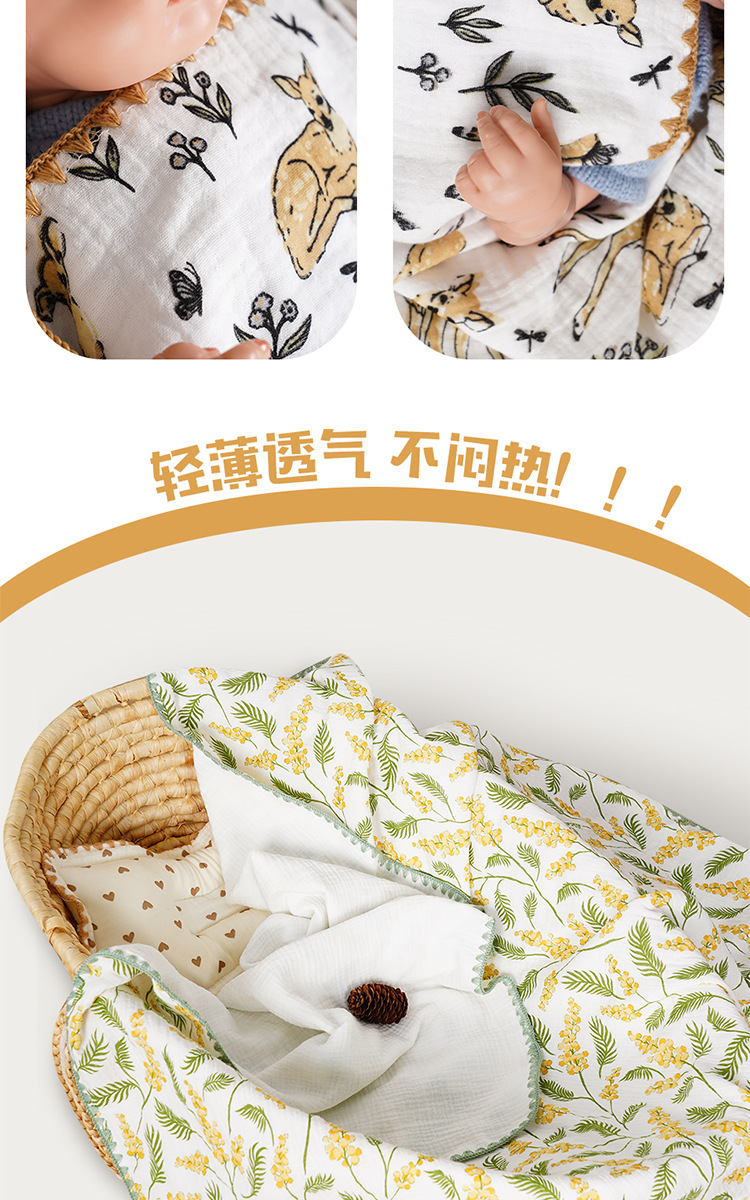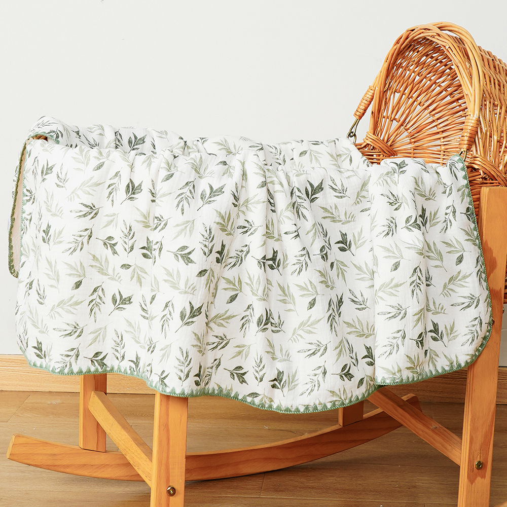 名称:Kangobaby新生儿绉布纱布盖毯4层刺绣花边宝宝棉纱毯子午睡小被子