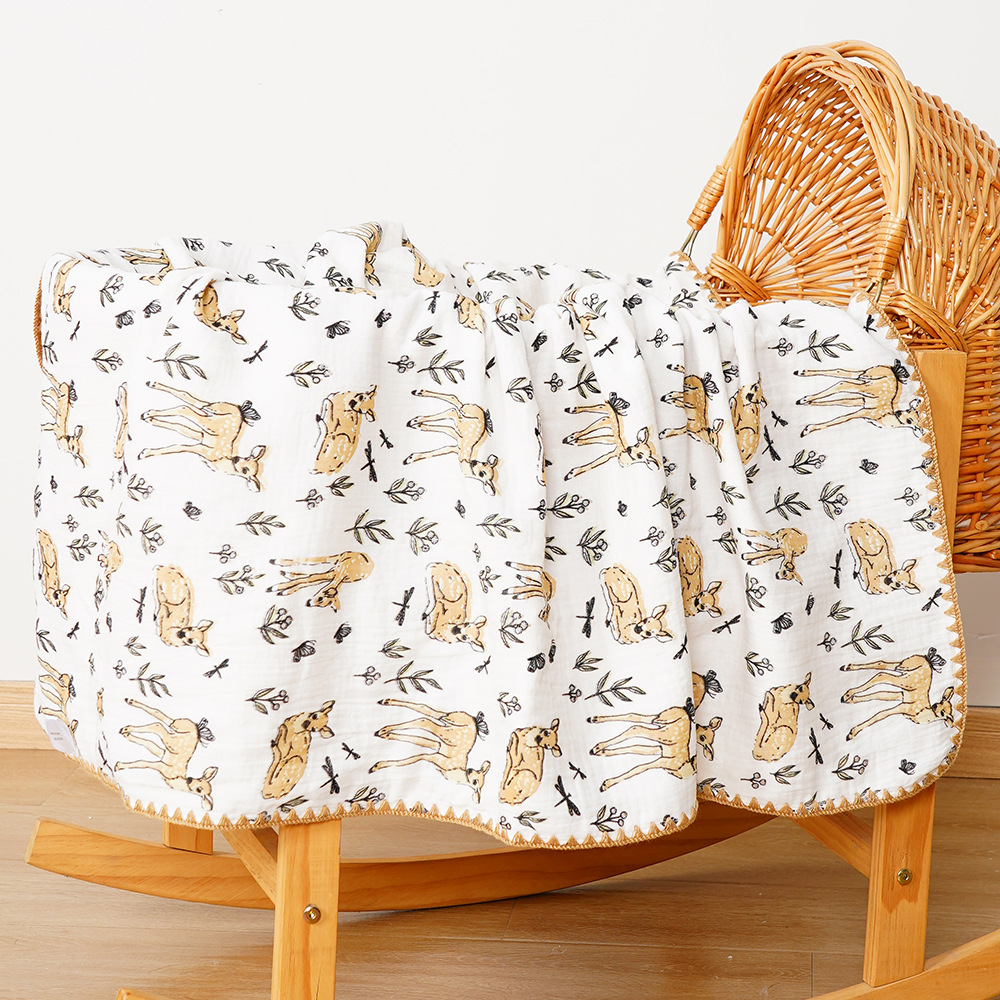 칸고베이비 신생아 크레이프 거즈 담요 4 층 자수 레이스 아기 면사 담요 낮잠 이불