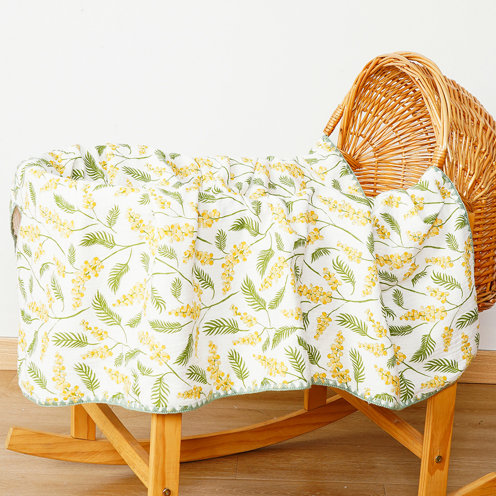 칸고베이비 신생아 크레이프 거즈 담요 4 층 자수 레이스 아기 면사 담요 낮잠 이불스토어 가기