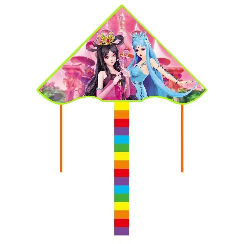 Weifang 연 도매 새로운 만화 어린이 연 격자 무늬 천 뜨거운 인쇄 바람 쉬운 비행 곡선 삼각형 연