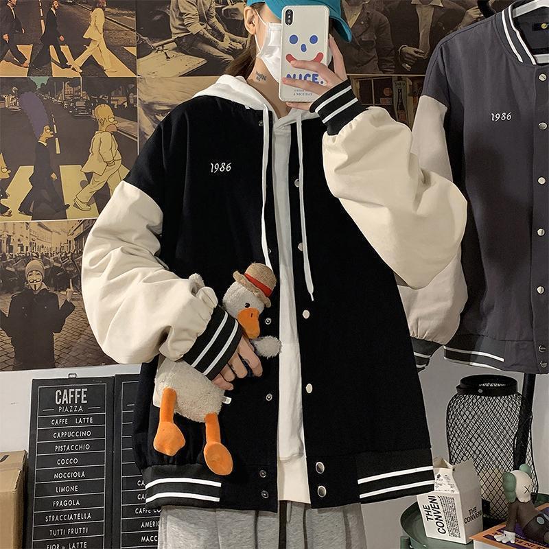 봄 패션 브랜드 코트 여성 복고풍 홍콩 스타일 캐주얼 스포츠 대비 컬러 야구 유니폼 탑 2021 새로운 느슨한 재킷