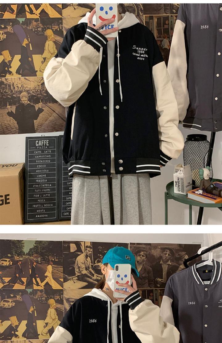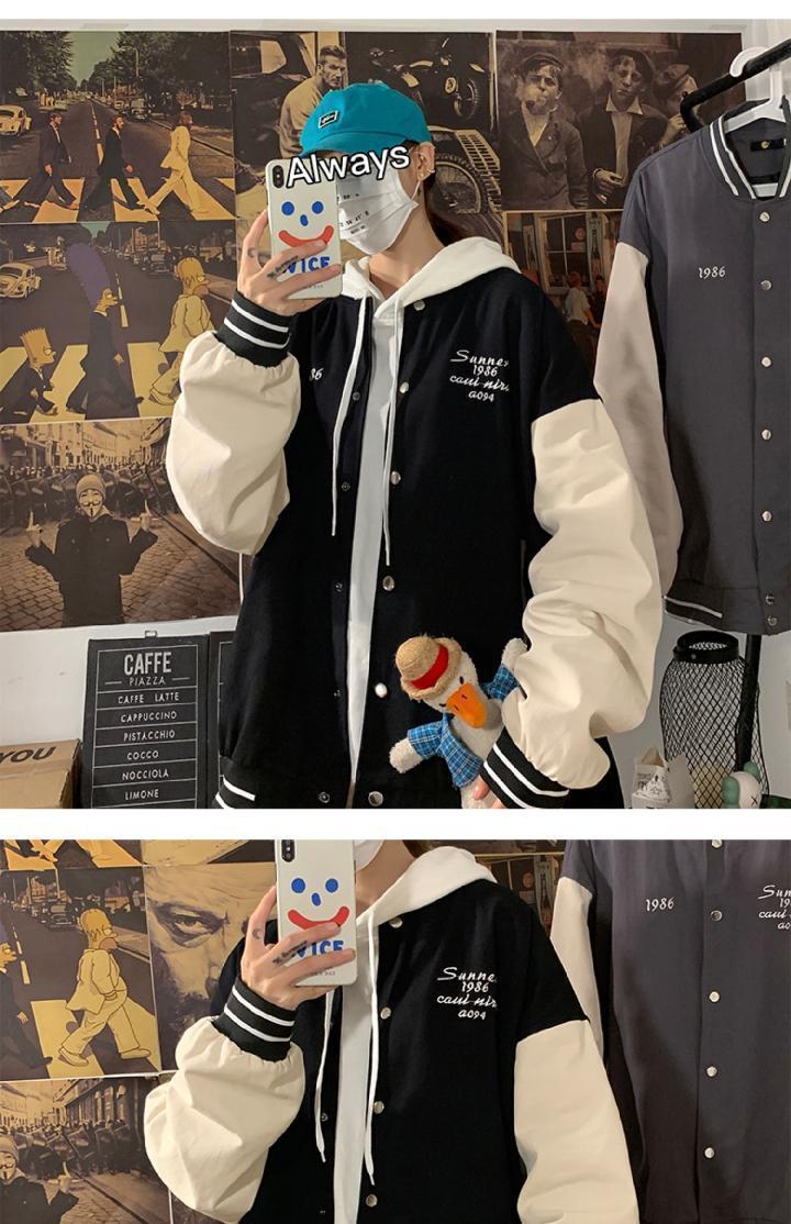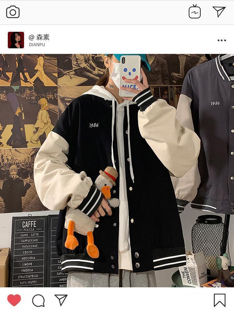 봄 패션 브랜드 코트 여성 복고풍 홍콩 스타일 캐주얼 스포츠 대비 컬러 야구 유니폼 탑 2021 새로운 느슨한 재킷스토어 가기