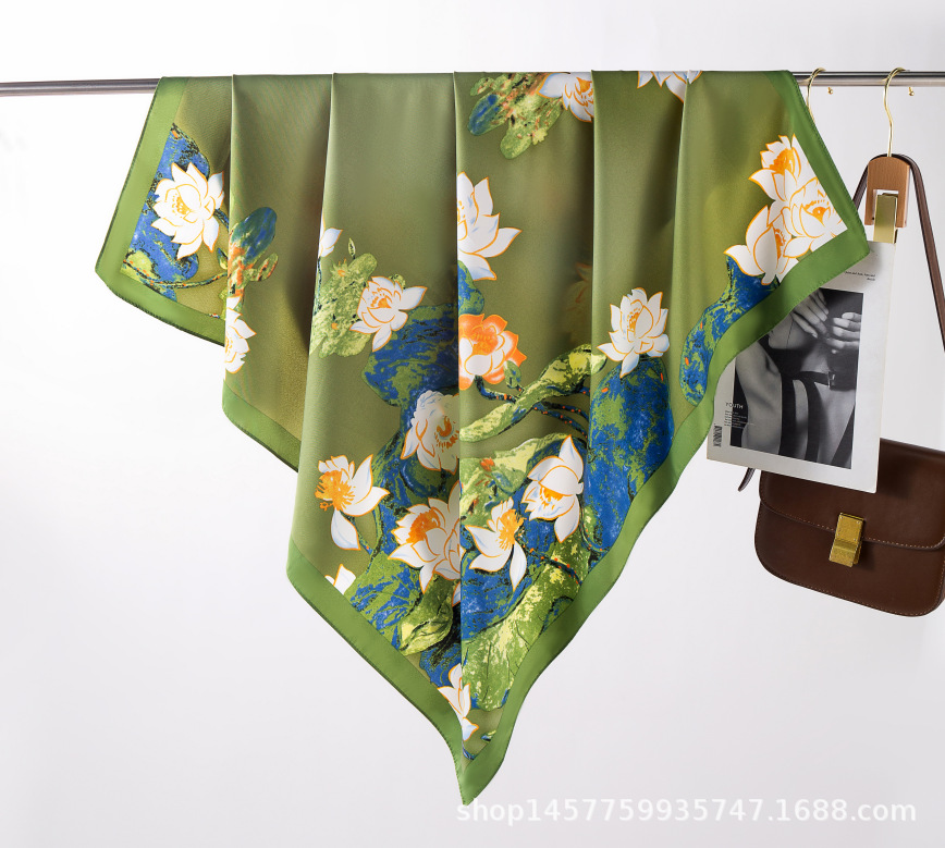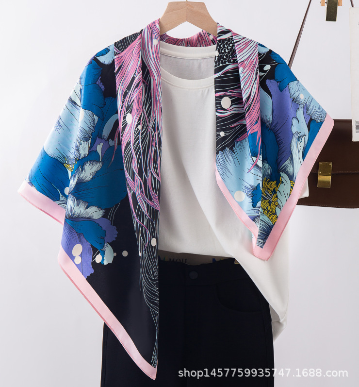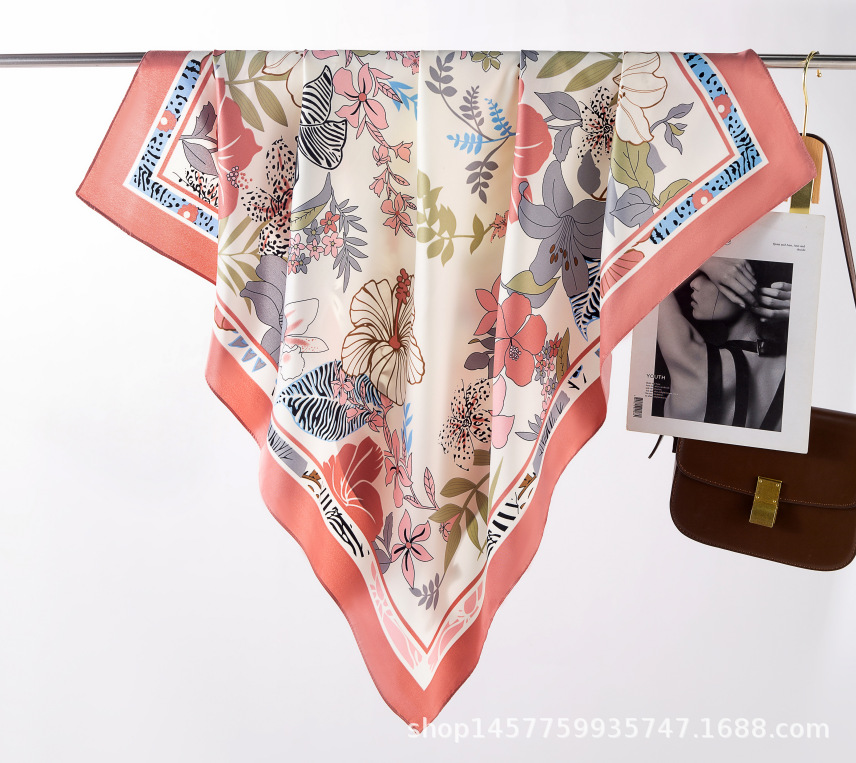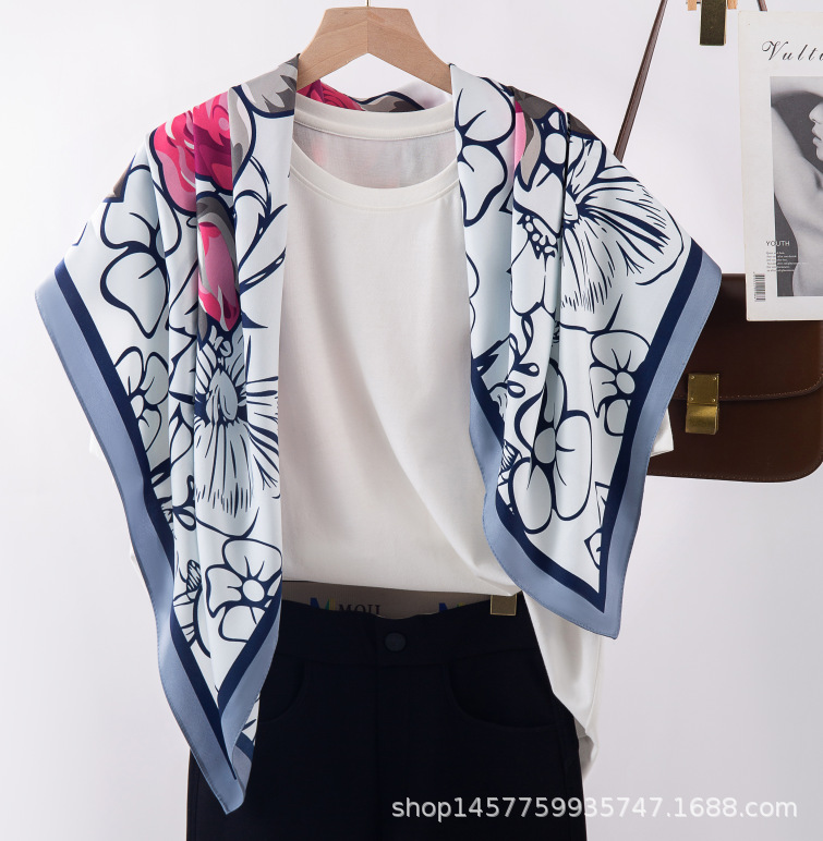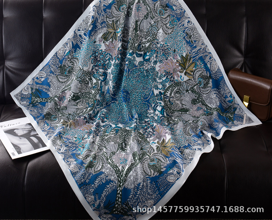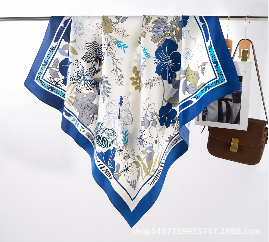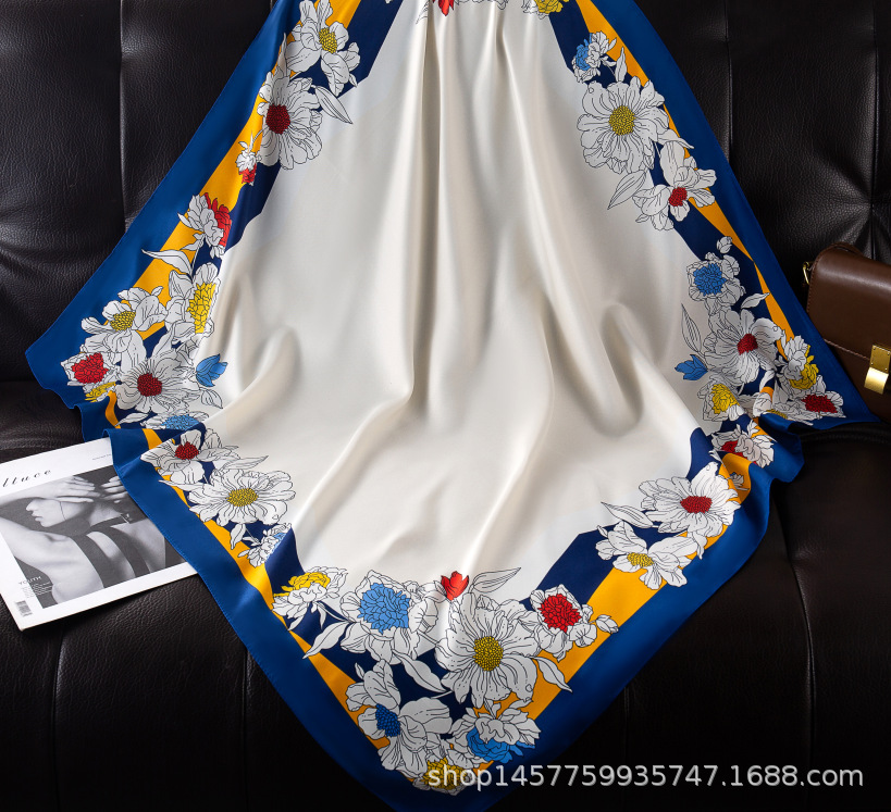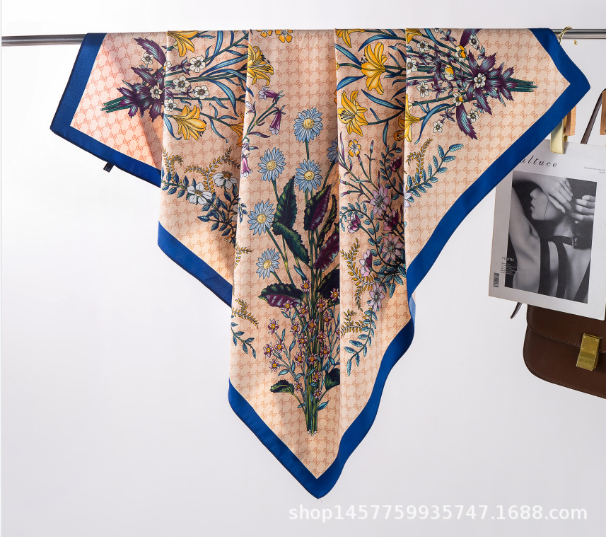 국경을 넘는 새로운 꽃 90 인쇄 큰 사각형 스카프 가을 및 겨울 패션 인기 가방 머리 스카프스토어 가기
