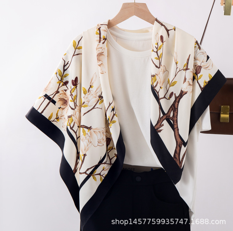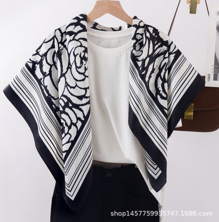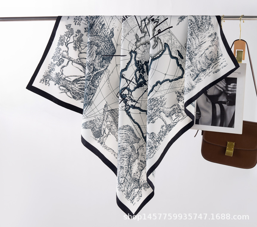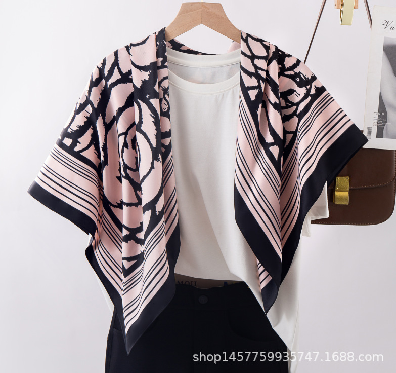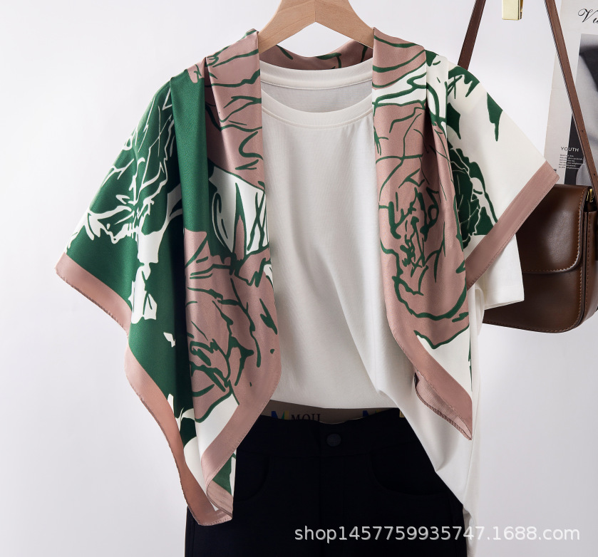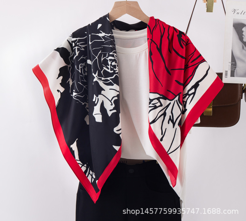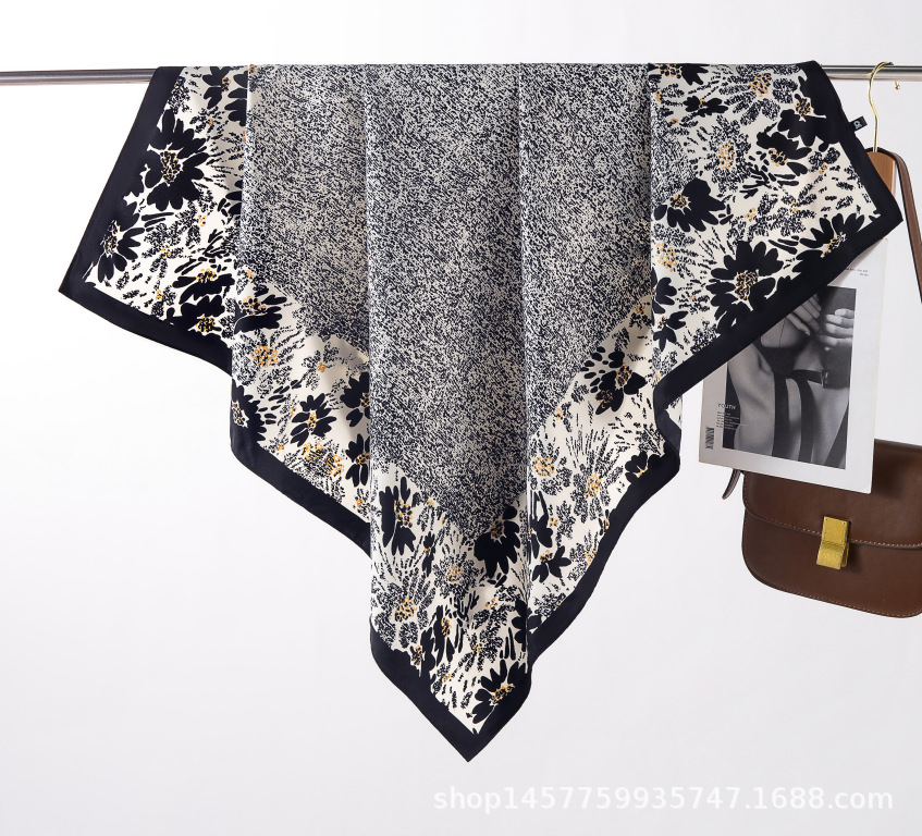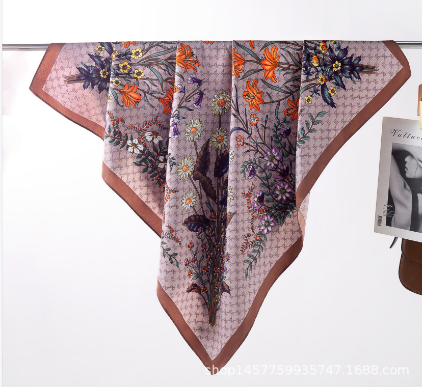 국경을 넘는 새로운 꽃 90 인쇄 큰 사각형 스카프 가을 및 겨울 패션 인기 가방 머리 스카프