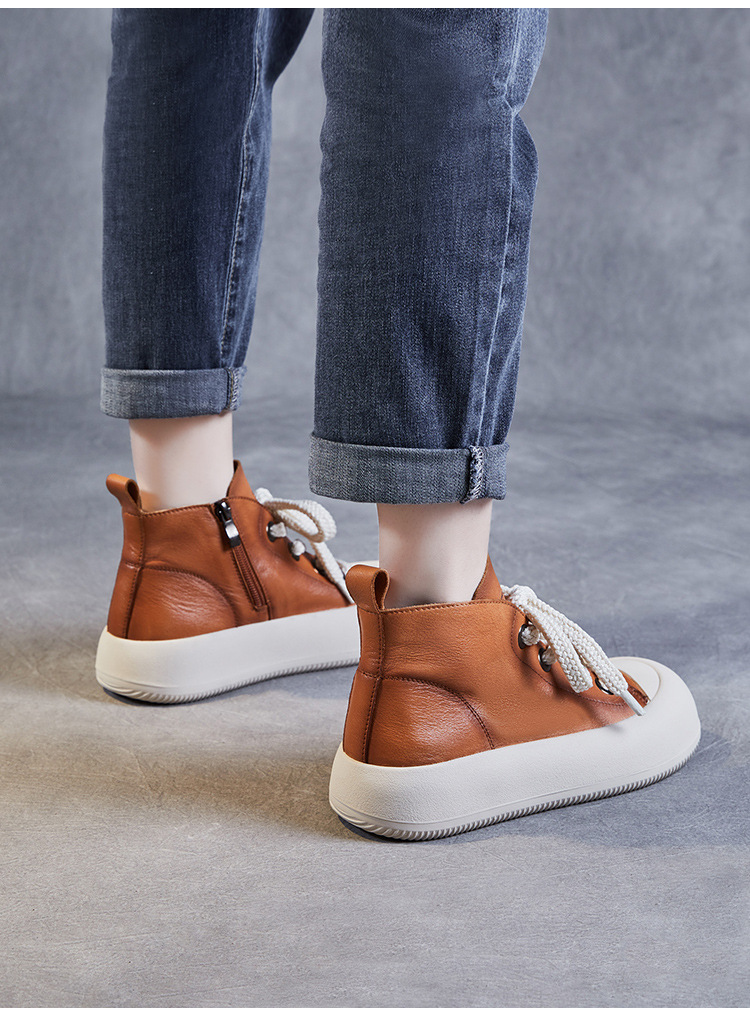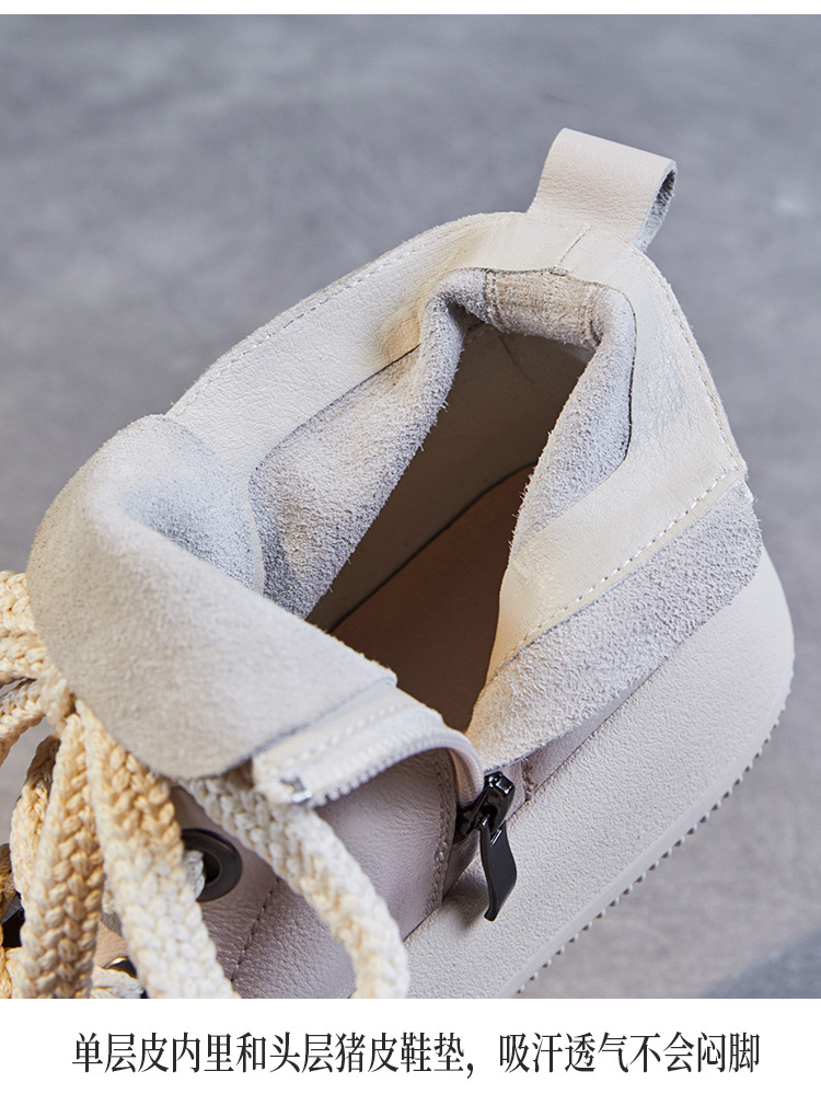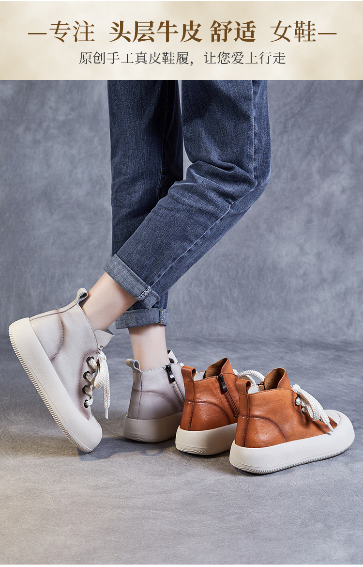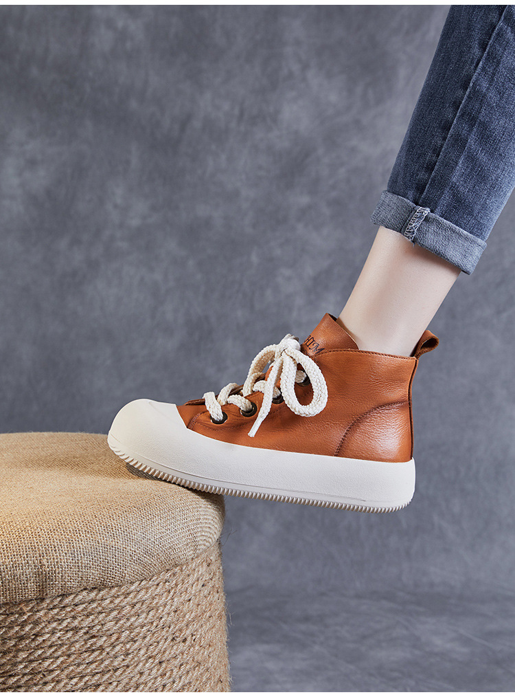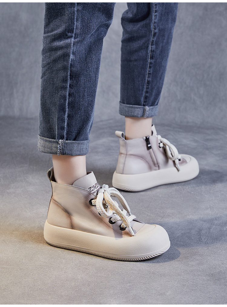 정품 가죽 플랫폼 여성을위한 최고급 신발 2024 봄 복고풍 다용도 레이스 업 싱글 레이어 신발 머핀 캐주얼 스케이트 신발 소 가죽 발목 부츠스토어 가기