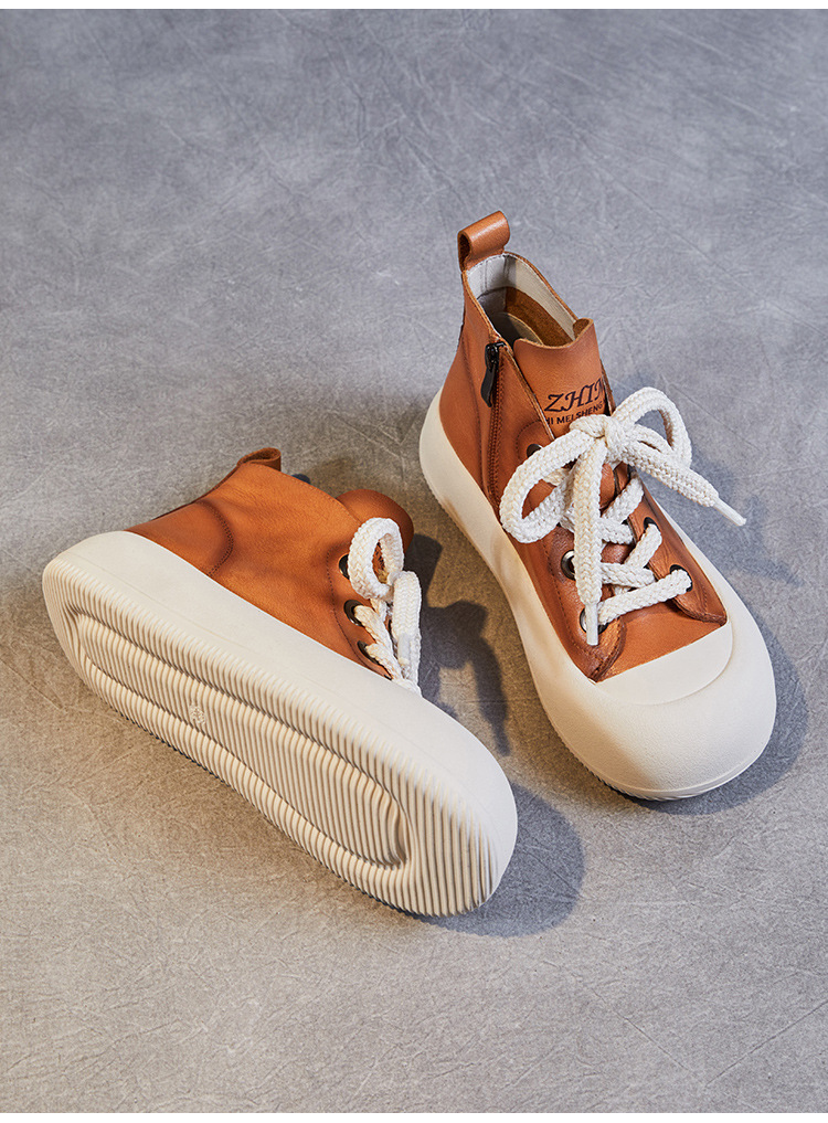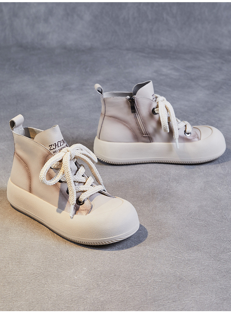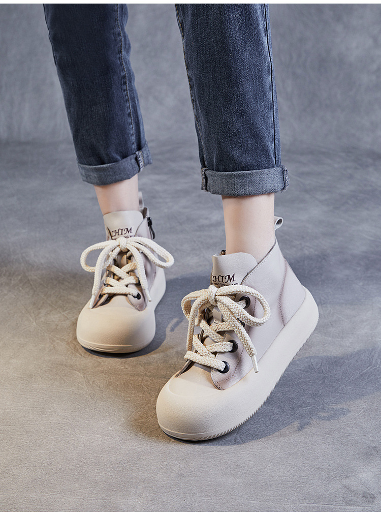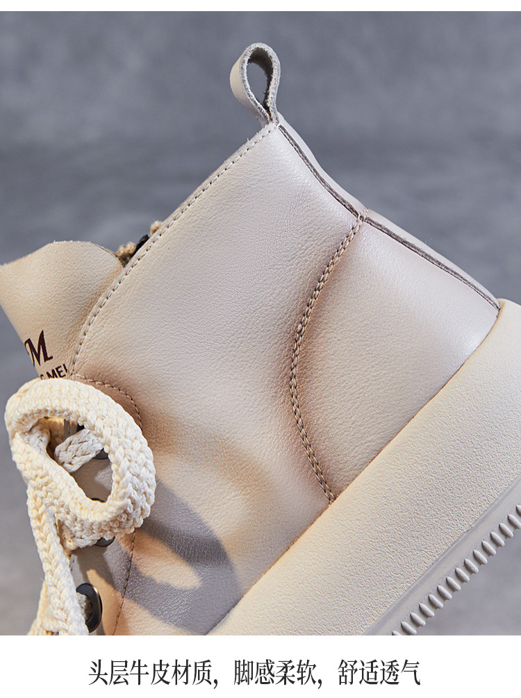 정품 가죽 플랫폼 여성을위한 최고급 신발 2024 봄 복고풍 다용도 레이스 업 싱글 레이어 신발 머핀 캐주얼 스케이트 신발 소 가죽 발목 부츠