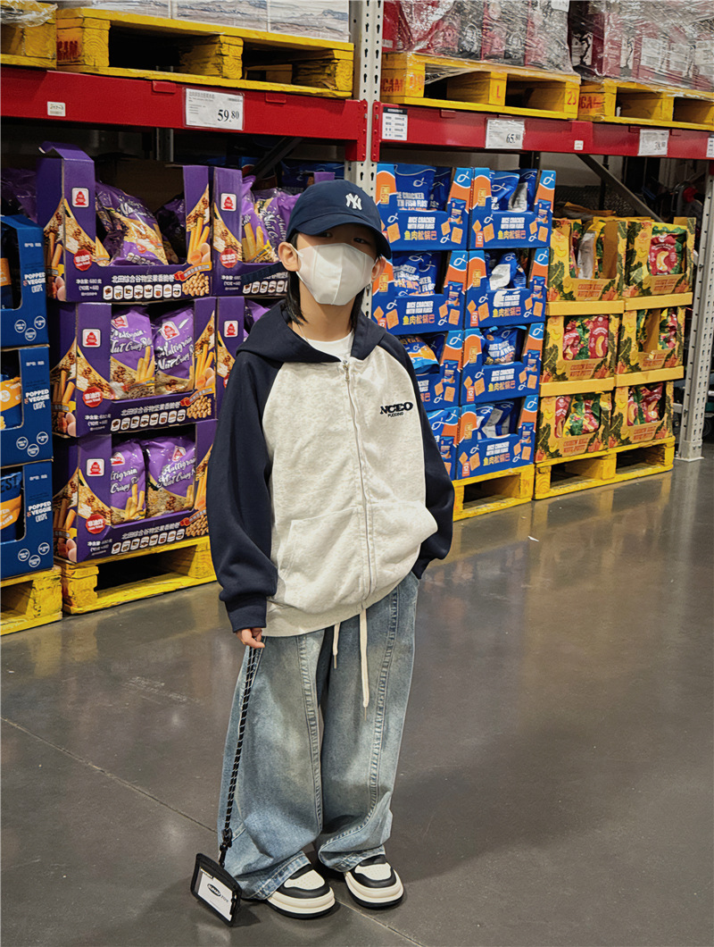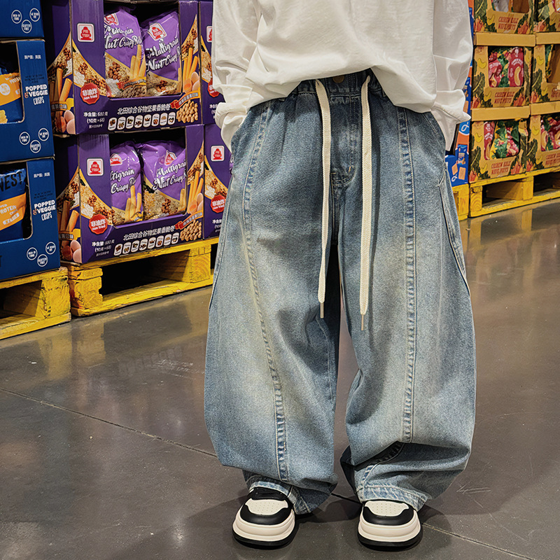 Baoduo 아동복 소년 봄 바지 2024 새로운 어린이 복고풍 스트레이트 청바지 봄과 가을 잘 생긴 패션스토어 가기