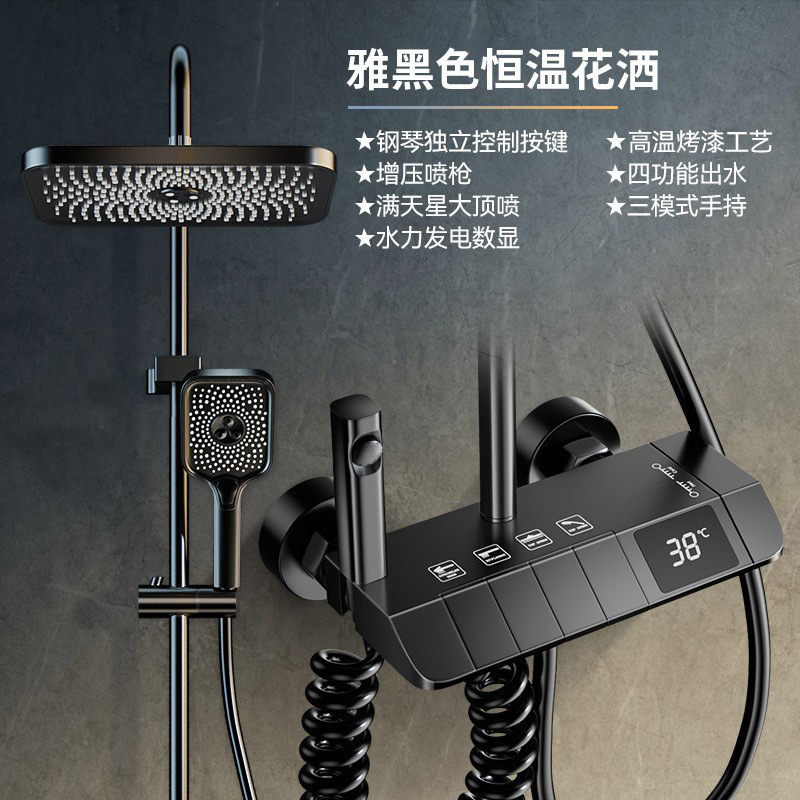 전체 구리 샤워 헤드 세트 도매 욕실 피아노 버튼 디지털 디스플레이 항온 가압 샤워 헤드 호텔 및 가정용스토어 가기