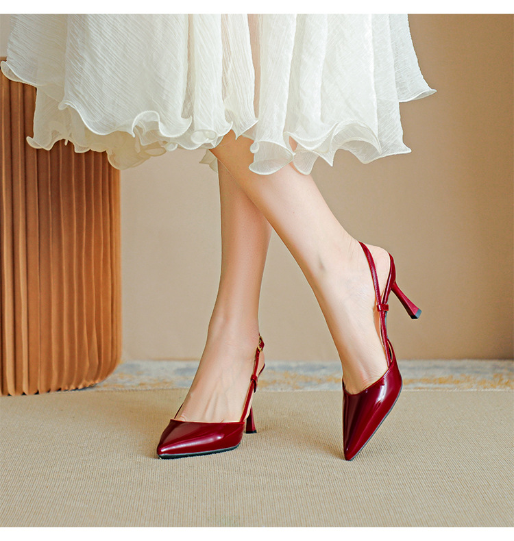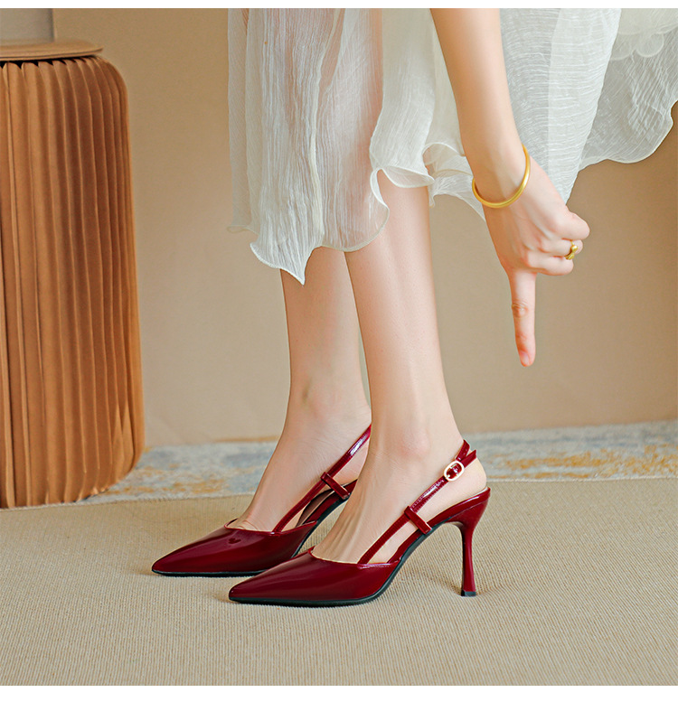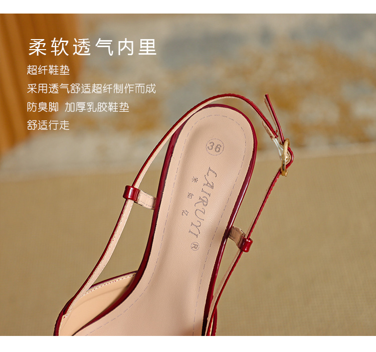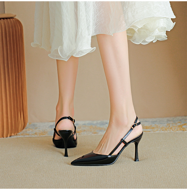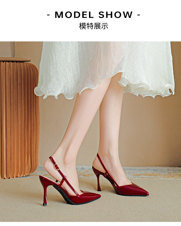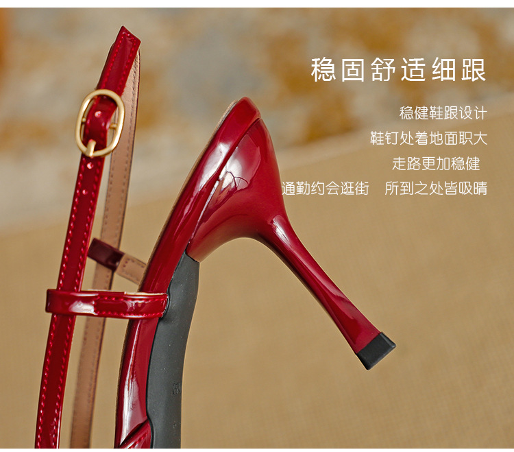 Bjm-2 특허 가죽 하이힐 신발 다시 빈 스틸레토 힐 샌들 여성의 새로운 여름 뾰족한 발가락 스트랩 대형 스몰 사이즈 단층 신발스토어 가기