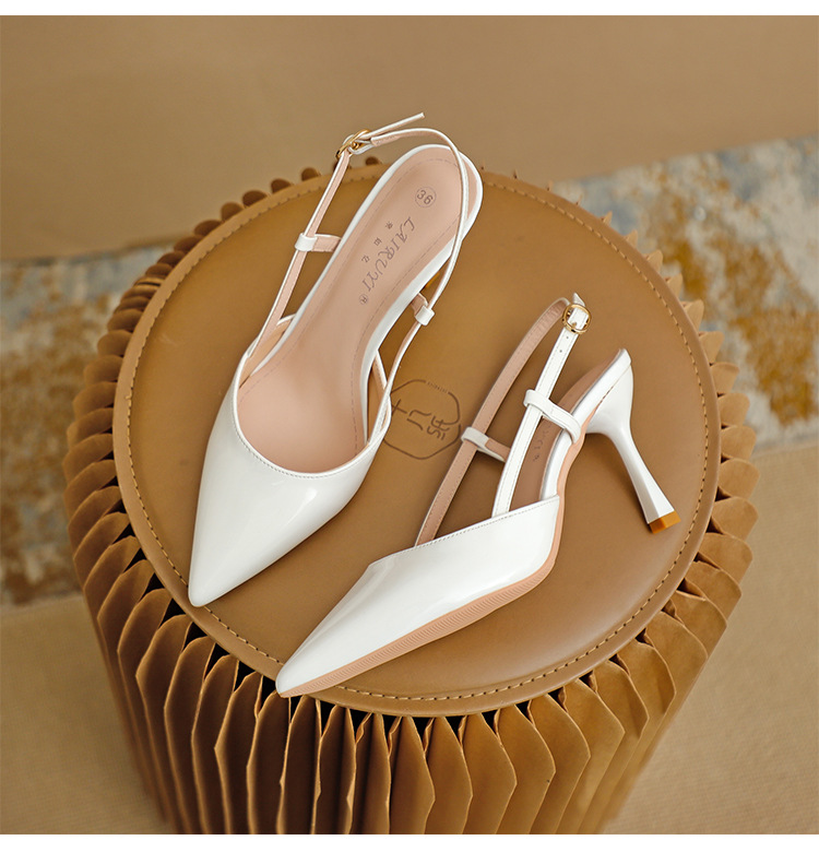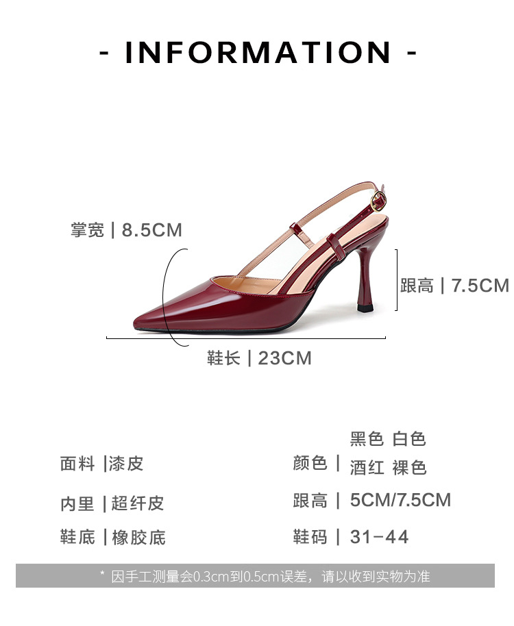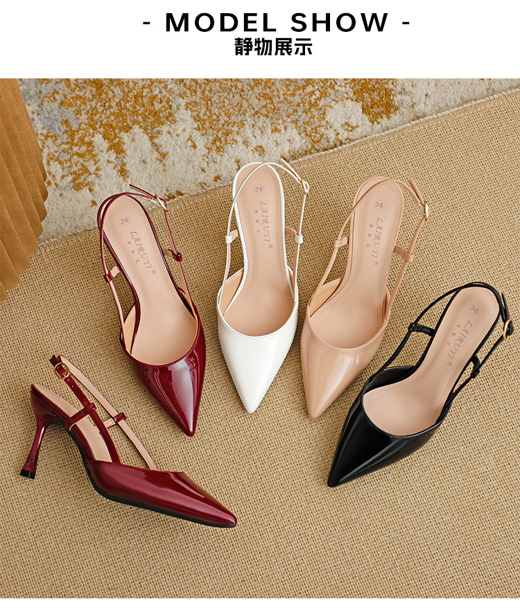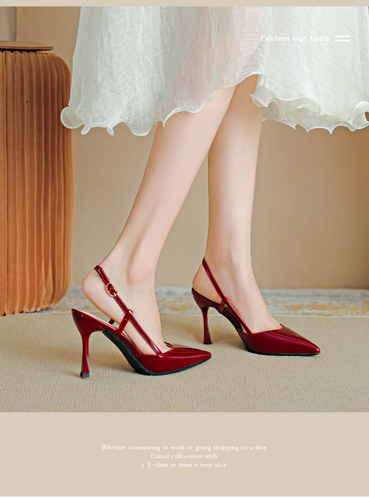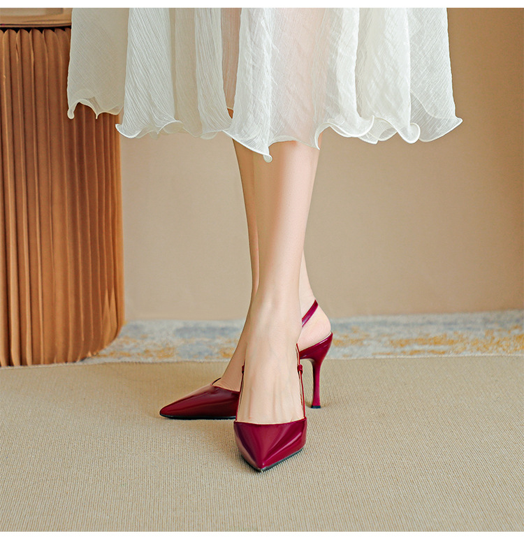 Bjm-2 특허 가죽 하이힐 신발 다시 빈 스틸레토 힐 샌들 여성의 새로운 여름 뾰족한 발가락 스트랩 대형 스몰 사이즈 단층 신발스토어 가기