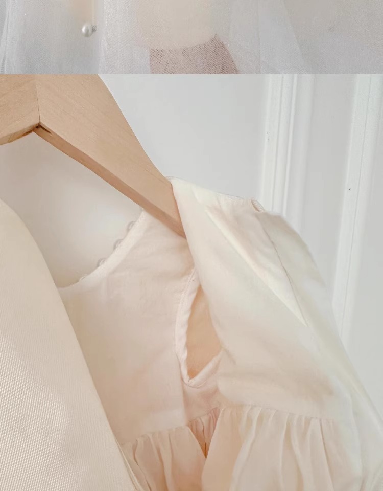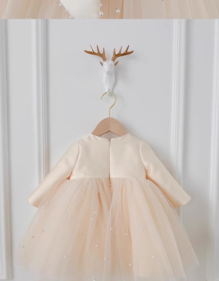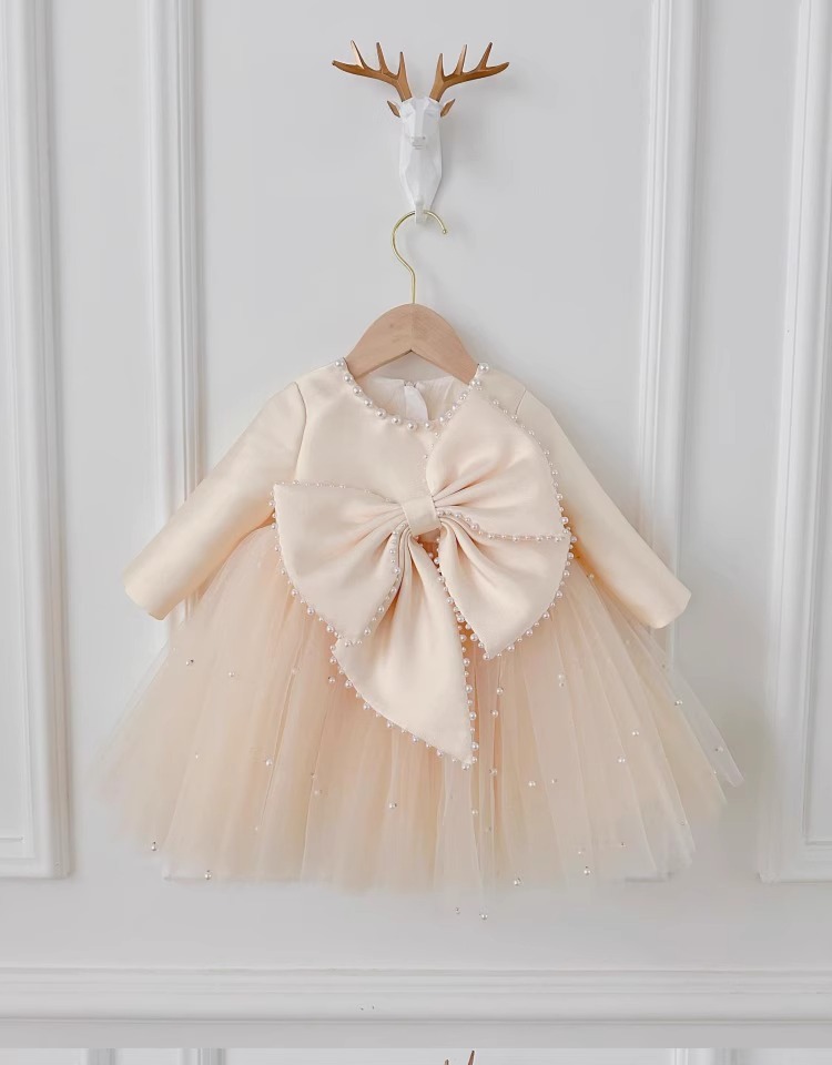 소녀 원피스 2024 새로운 아기 생일 공주 원피스 긴 소매 높은 허리 큰 활 진주 솜털 거즈 원피스스토어 가기