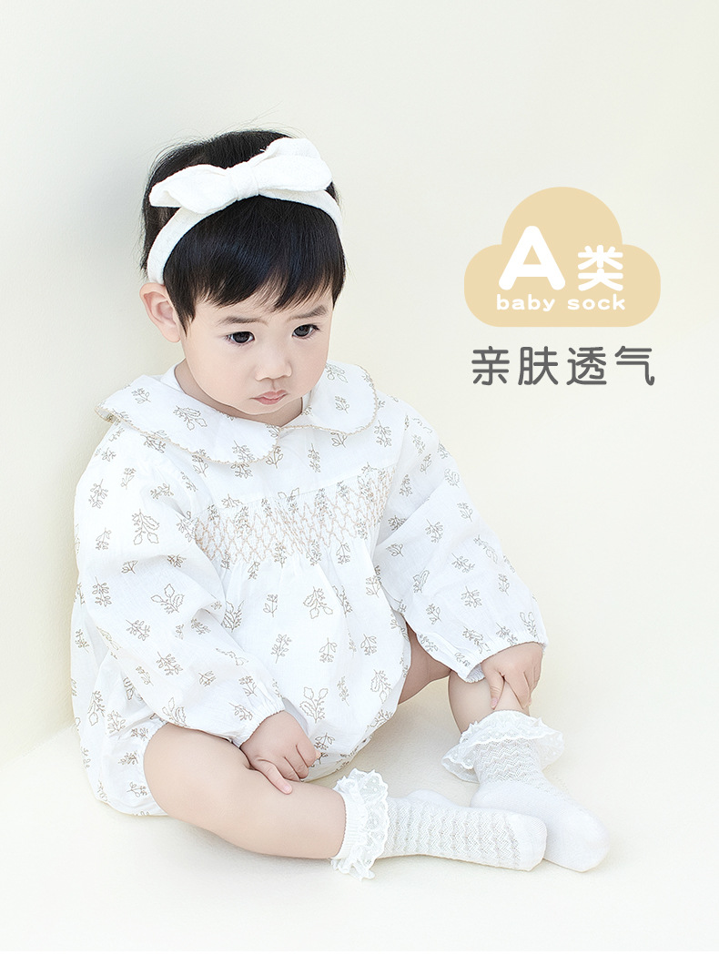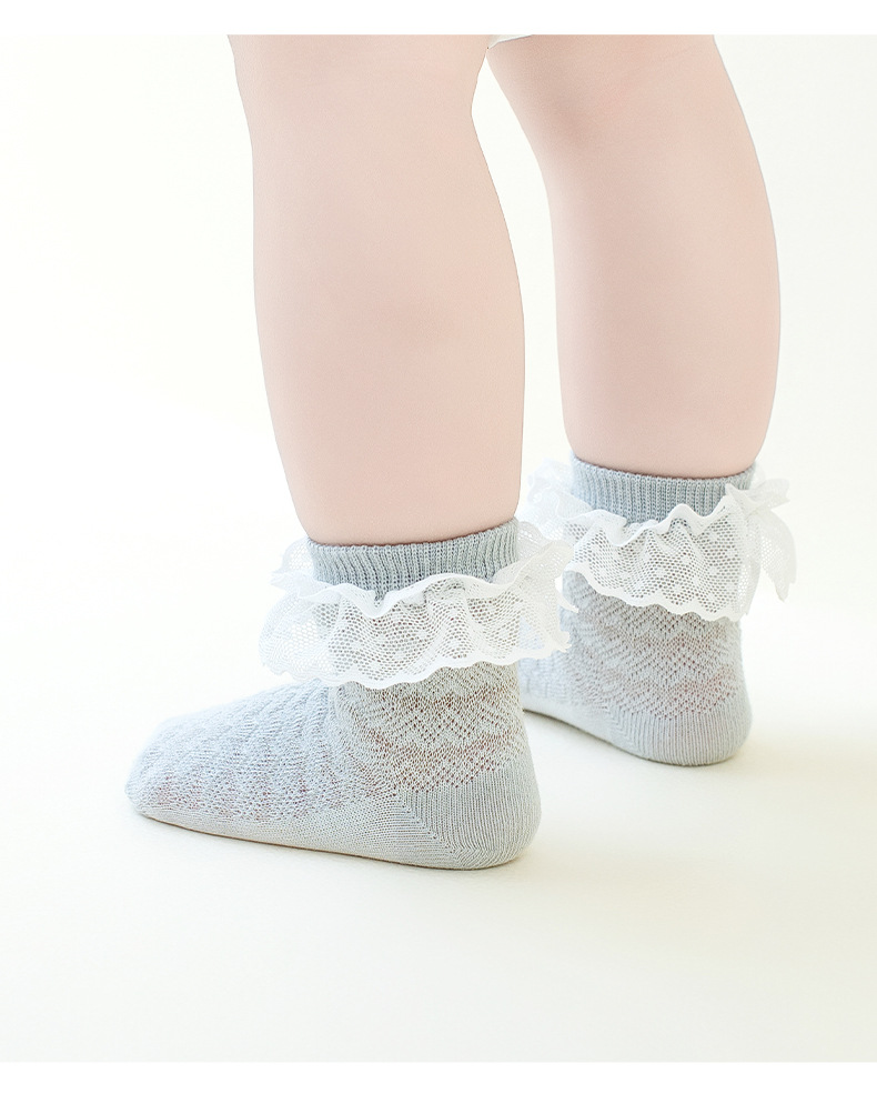 아기 양말 여름 얇은 메쉬 중공 레이스 여름 공주 아기 느슨한 중간 송아지 양말