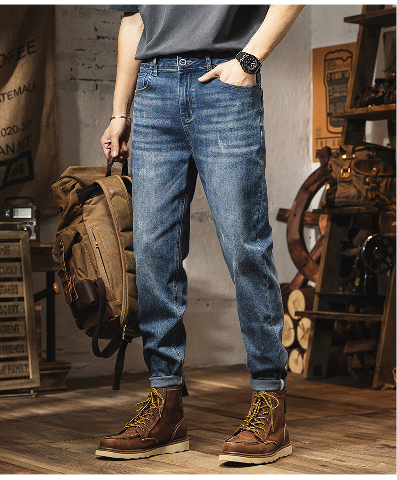 플러스 사이즈 남성 봄과 여름 세탁 청바지 남성용 느슨한 플러스 사이즈 유럽과 미국 스타일의 복고풍 청바지 남성용 바지스토어 가기