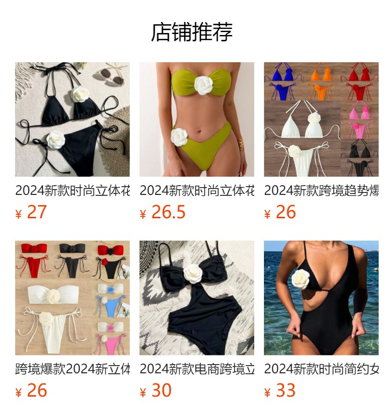 2024 새로운 패션 3 차원 꽃 비키니 세트 국경 라자다 성적 해변 휴가 비키니 수영복스토어 가기