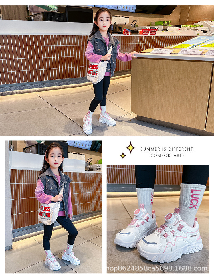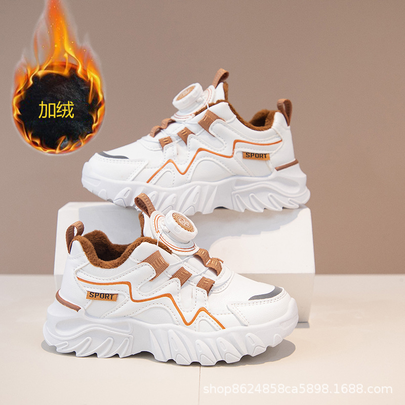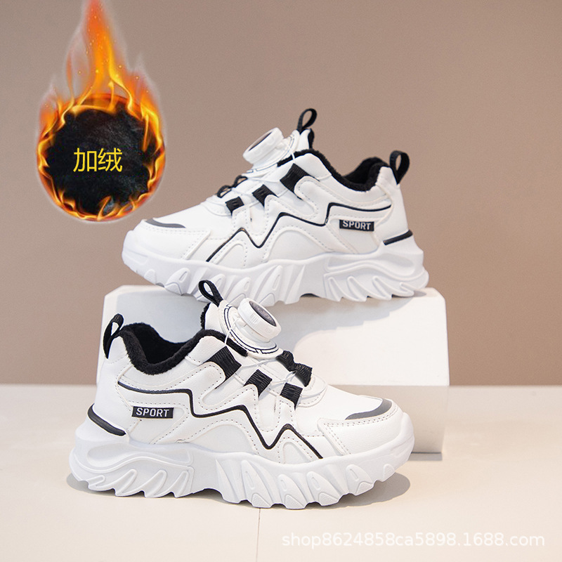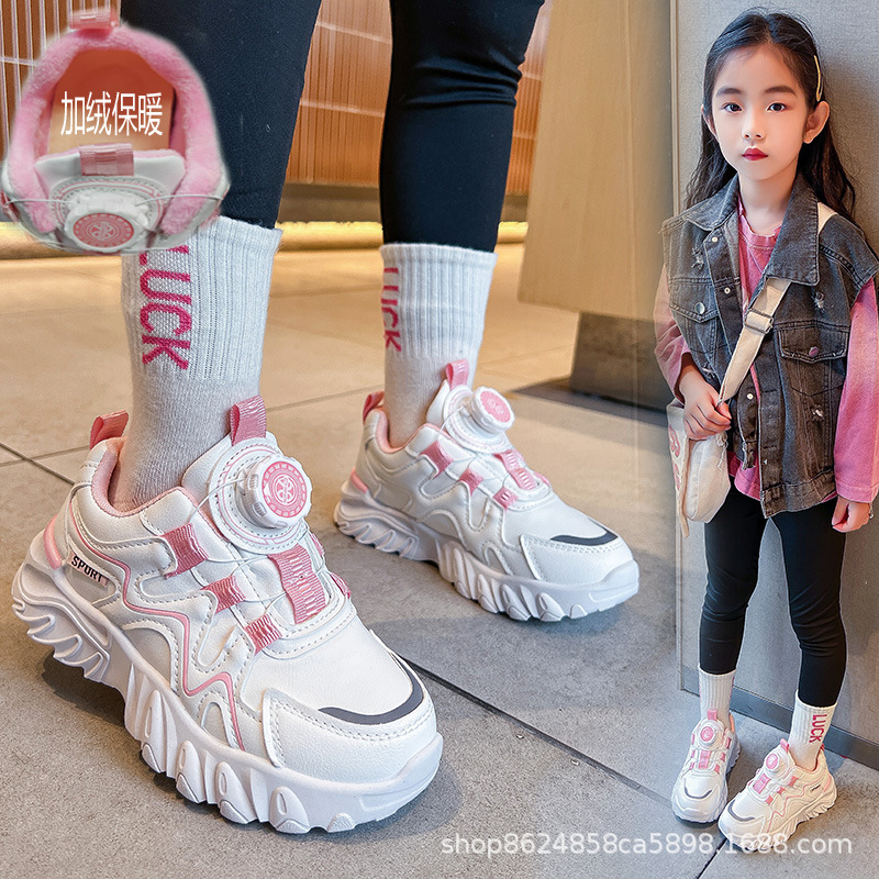 황령 정품 여아 운동화 신상 방수 플러스 벨벳 아동화 버튼형 유아 러닝 아빠 신발 트렌디 신발스토어 가기