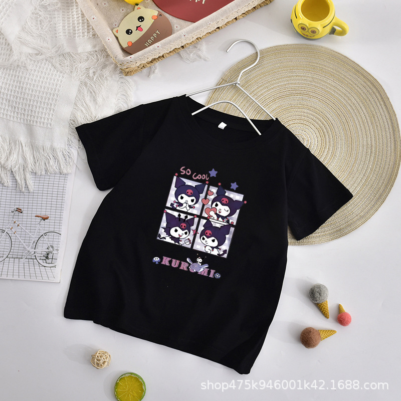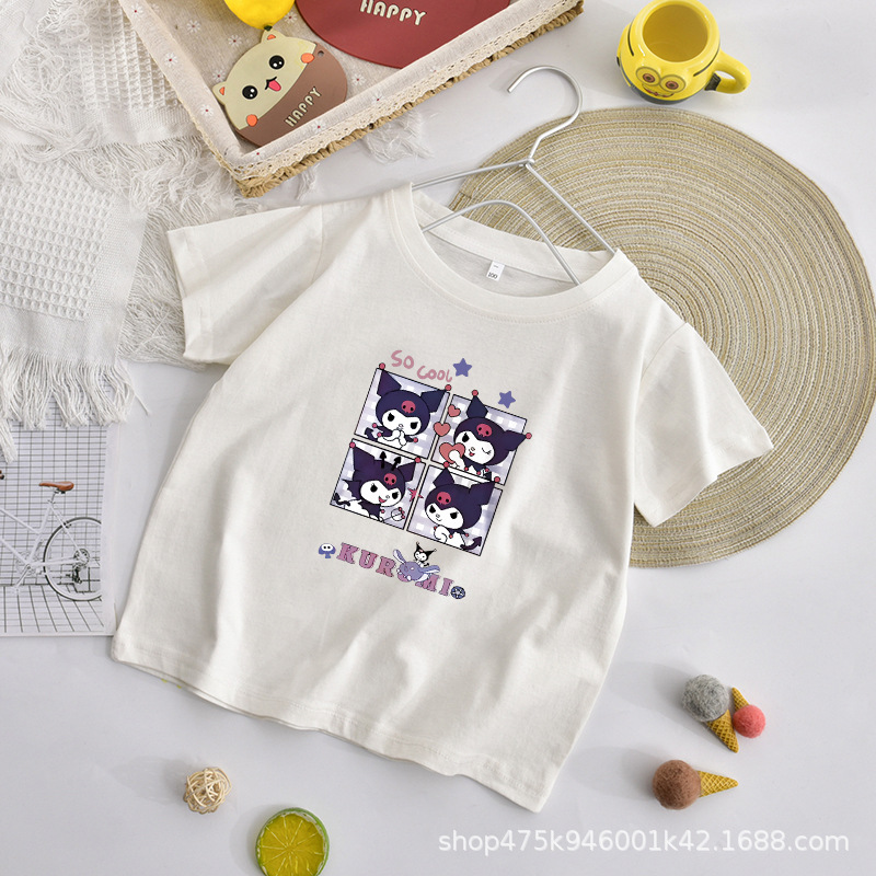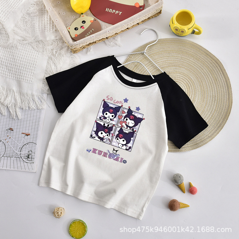 Kulomi Girls Cotton 반팔 티셔츠 여름 새로운 세련된 올매치 반소매 탑 트렌디 미드 빅 키즈 Ins