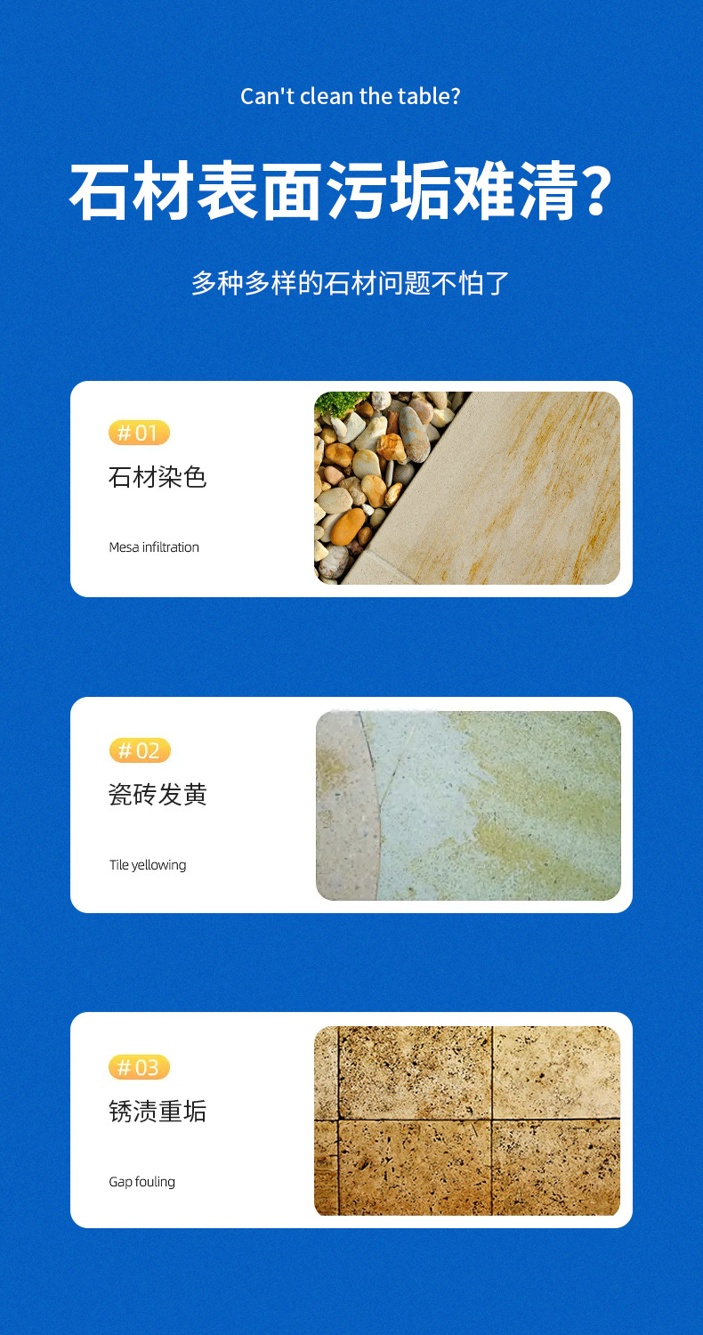 석재 세정제는 화강암, 대리석, 녹 얼룩, 석영석 조리대 등의 오염을 효과적으로 제거합니다.스토어 가기