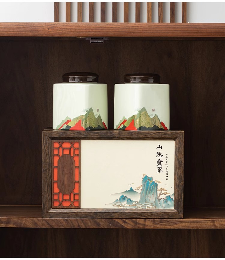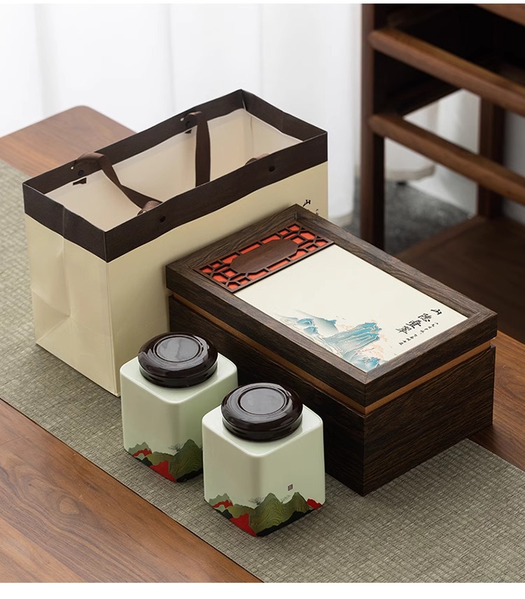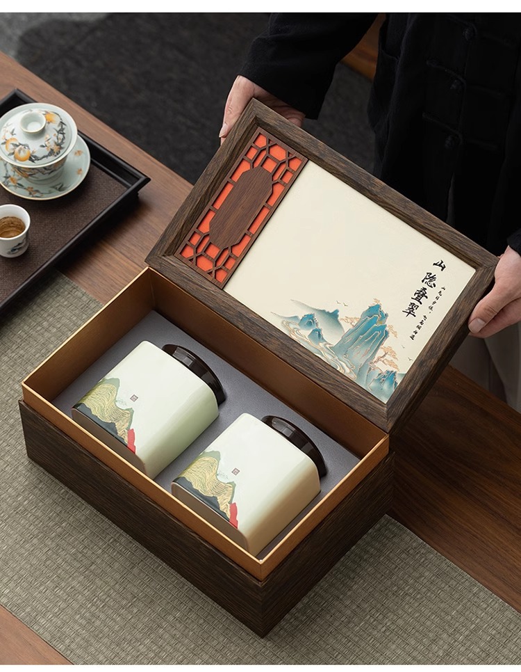 고급 중국 차 선물 상자 빈 상자 포장 상자 차 캔 선물 상자 세라믹 캔 로고 축제 연례 회의 선물