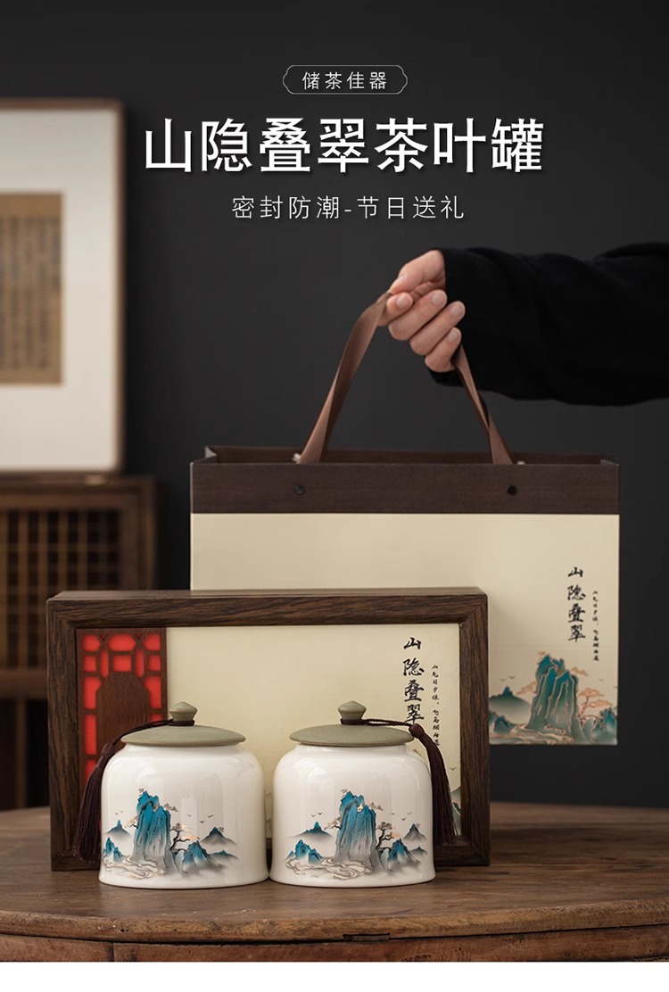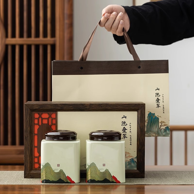고급 중국 차 선물 상자 빈 상자 포장 상자 차 캔 선물 상자 세라믹 캔 로고 축제 연례 회의 선물스토어 가기