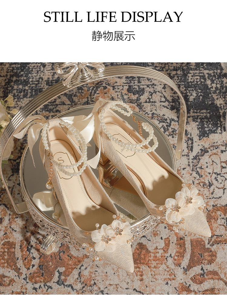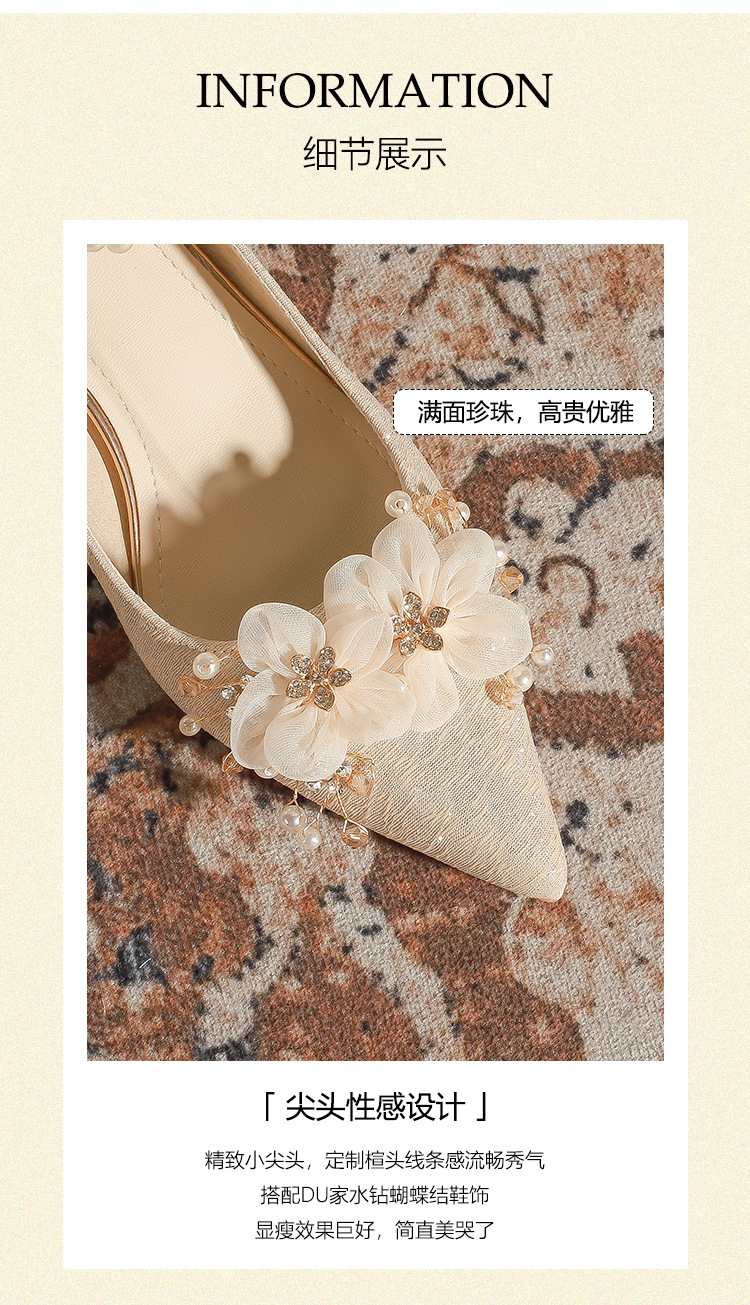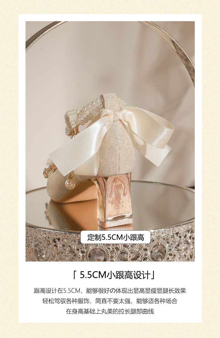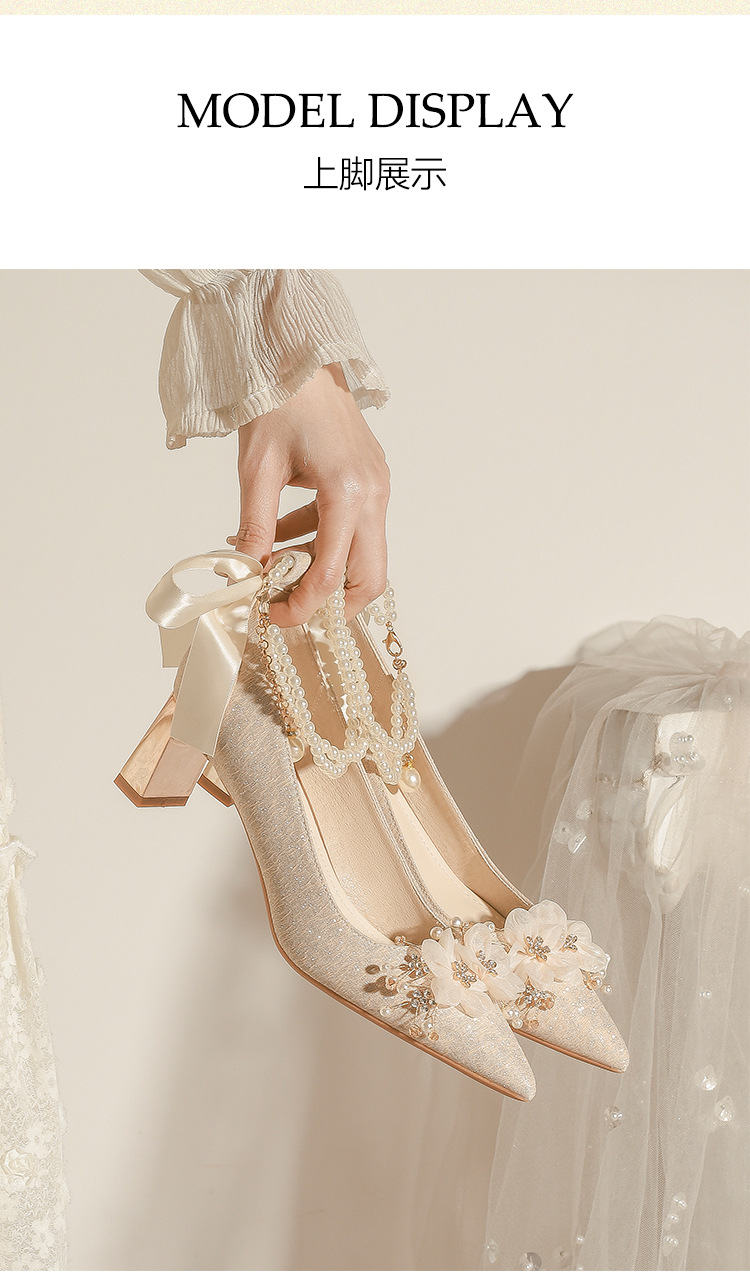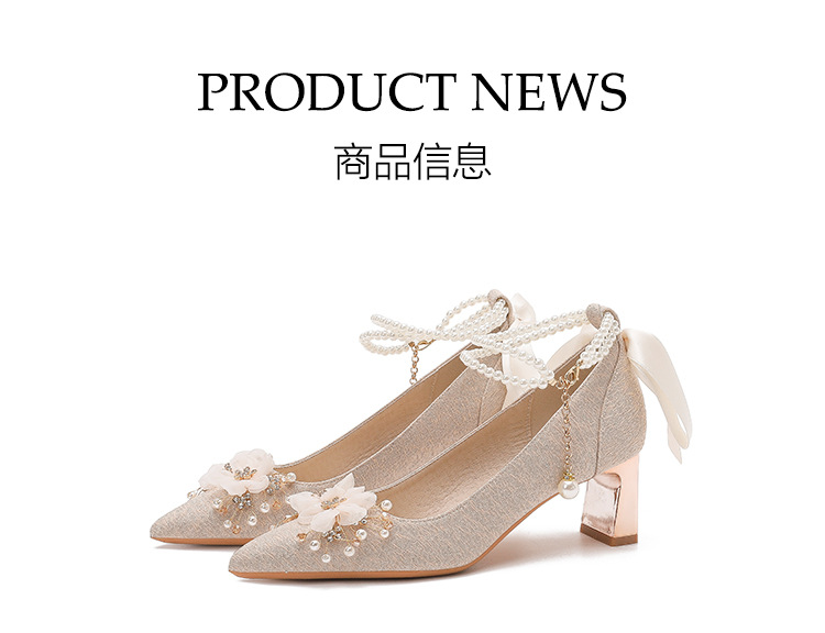 C523-11 연회 원피스 웨딩 슈즈 2024 두꺼운 미드 힐 뾰족한 싱글 레이어 신발 신부 신발 우아한 올 매치 웨딩 원피스 40-43
