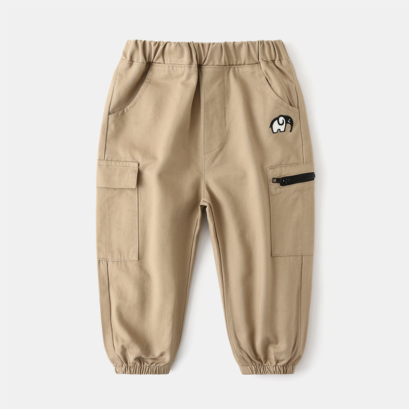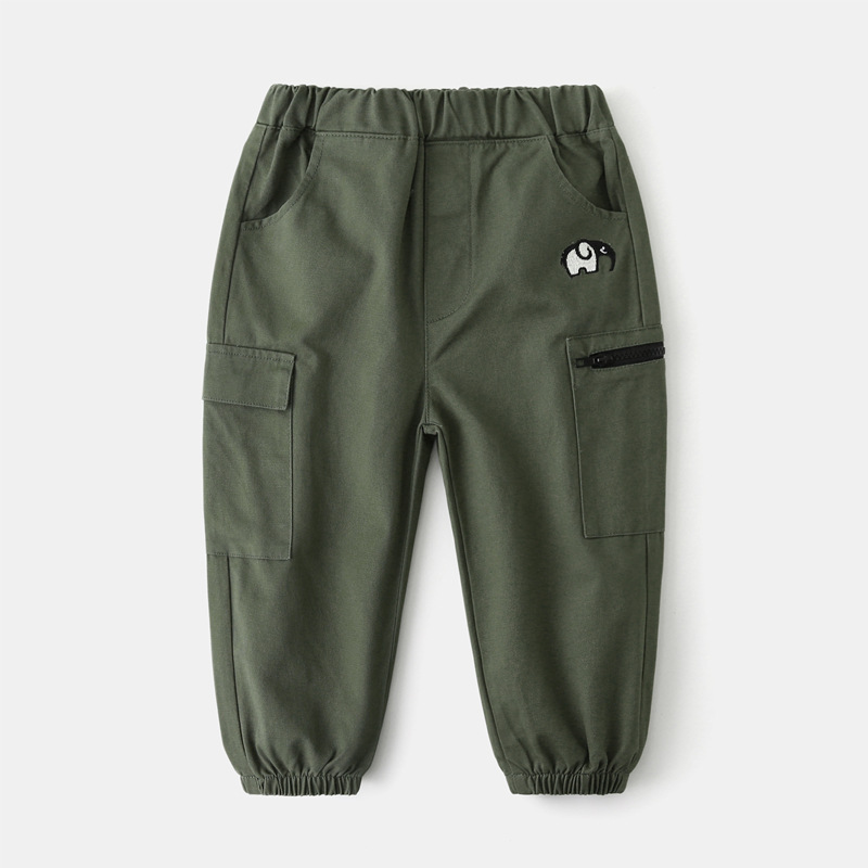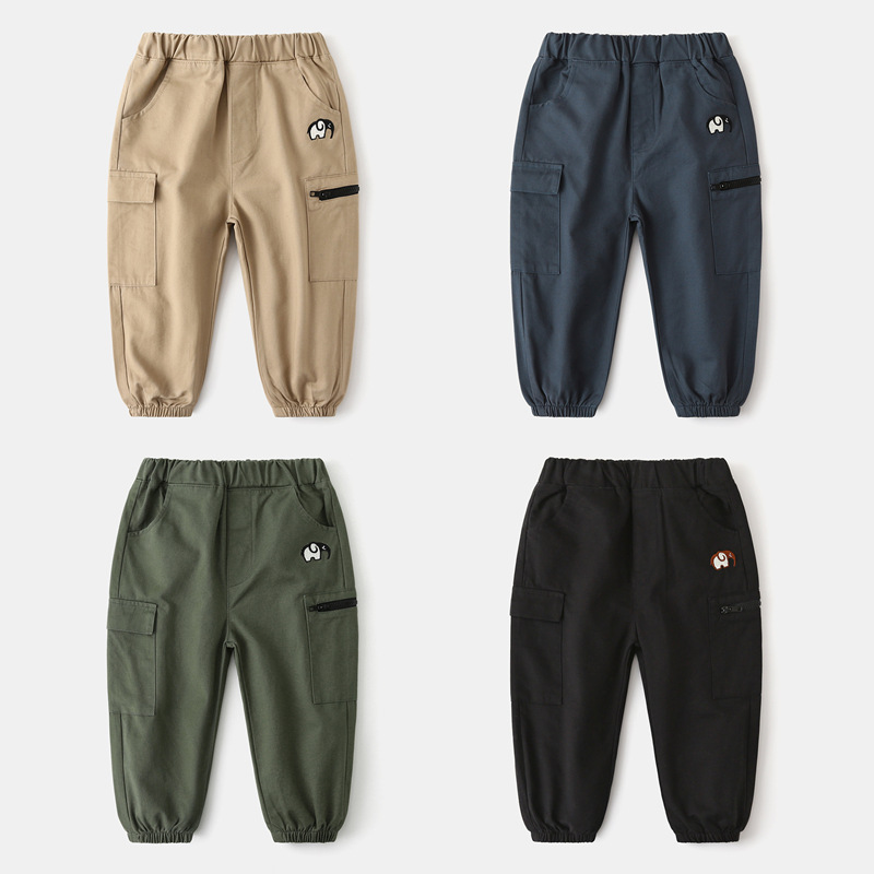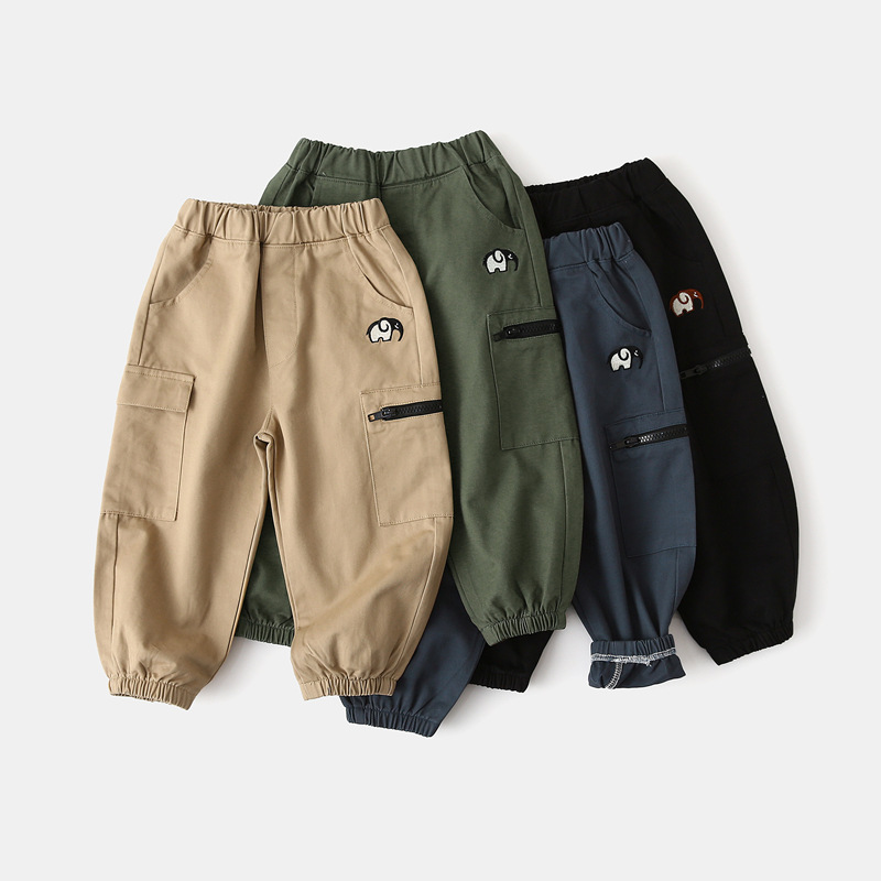 어린이 캐주얼 바지 도매 2024 새 소년 봄과 가을 바지 아기 자수 바지 유행 한 조각 배달스토어 가기