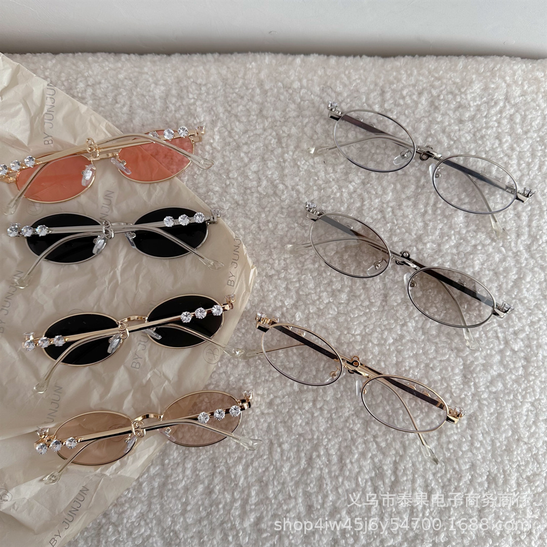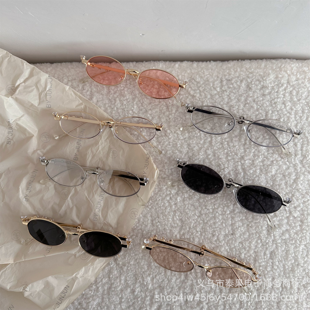 여름 새로운 부모-어린이 서양 스타일 다이아몬드 유럽과 미국 스타일 개인화 된 틈새 금속 Concave 선글라스 소녀 선스크린 선글라스스토어 가기
