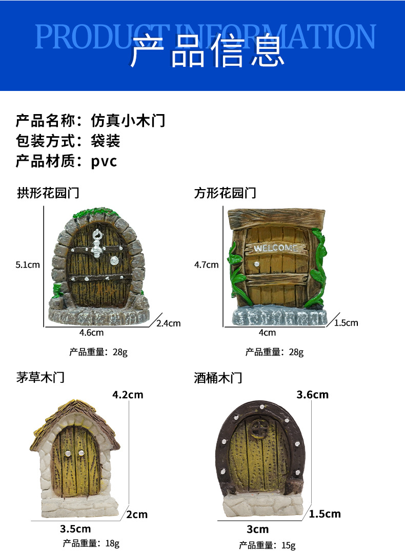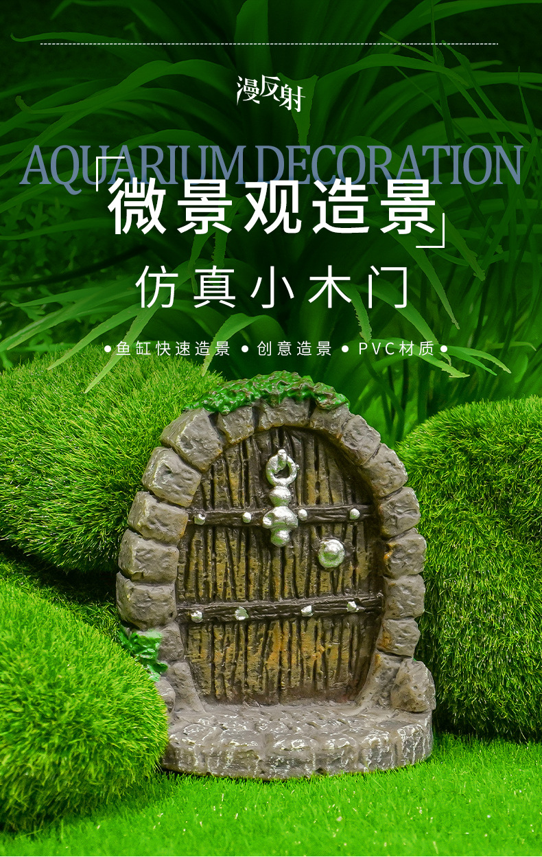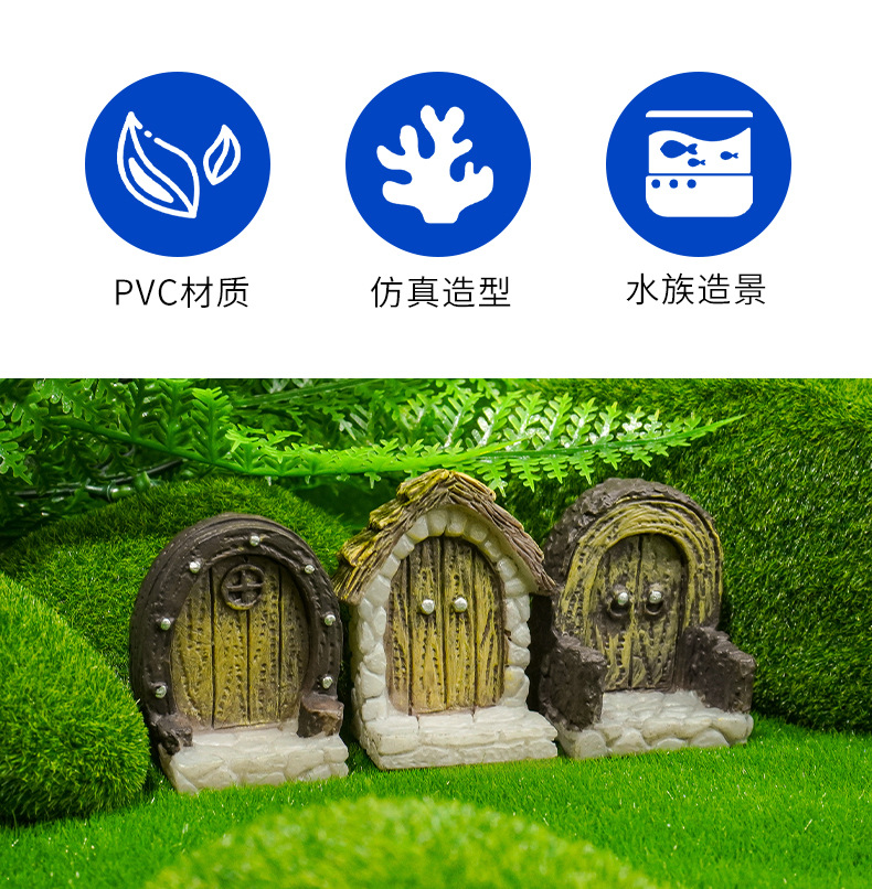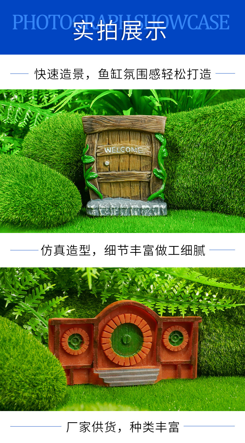 수조 조경 장식품, 시뮬레이션된 독특한 작은 나무 문 사진 프레임 액세서리, 수지 호빗 도어 및 창문, 가게 주인이 추천합니다.스토어 가기