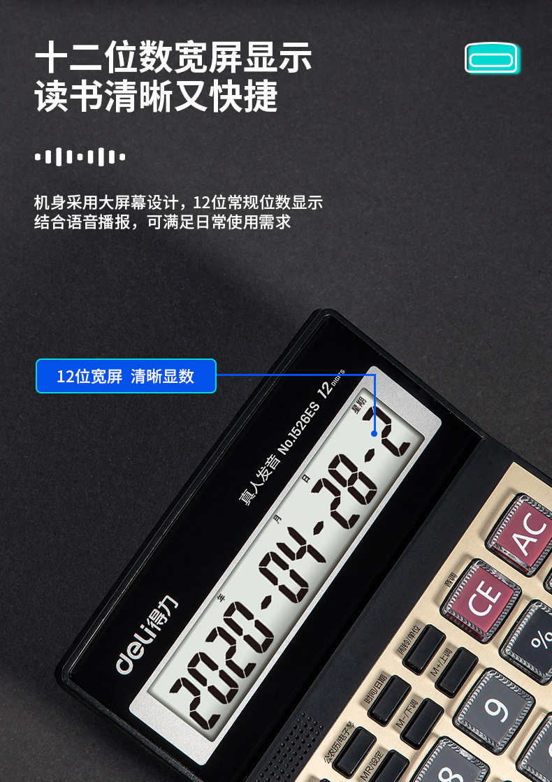 Deli 1526es 계산기 음성 상용 컴퓨터 회계 대형 다기능 전용