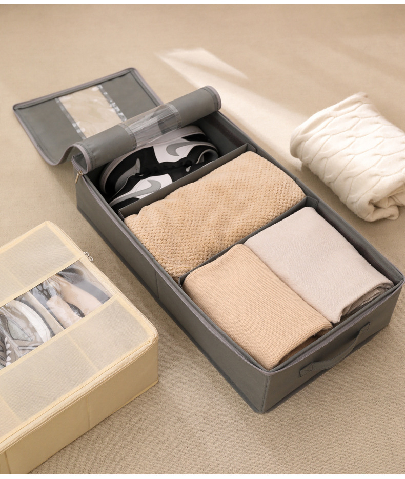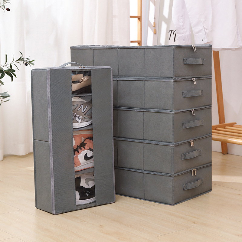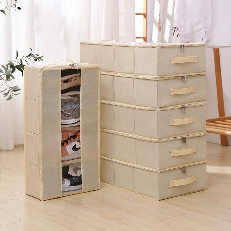 패브릭 신발 상자 투명 투명 창 보관 의류 보관 상자 부직포 플립 접이식 신발 상자 보관 상자스토어 가기