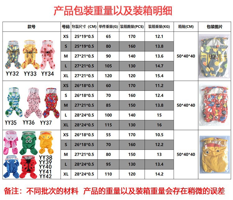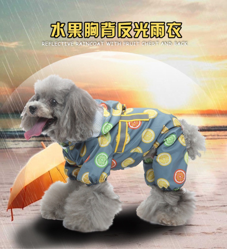 국경을 넘는 애완동물 용품 만화 테디 포메라니안 강아지 우비 폴리에스터 귀여운 애완동물 중소형견 우비 네발 우비