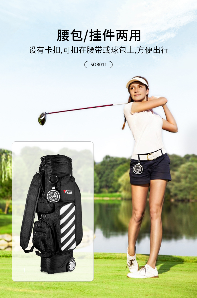 腰包/挂件两用,设有卡扣,可扣在腰带或球包上,方便出行