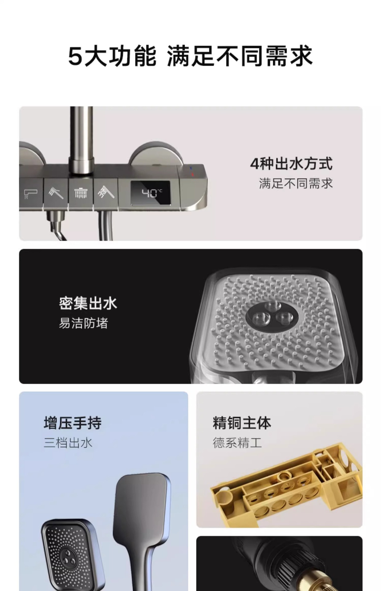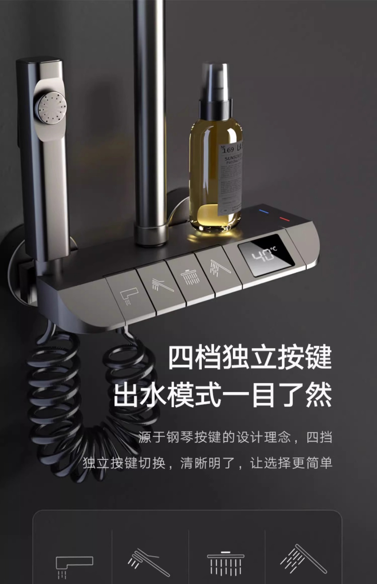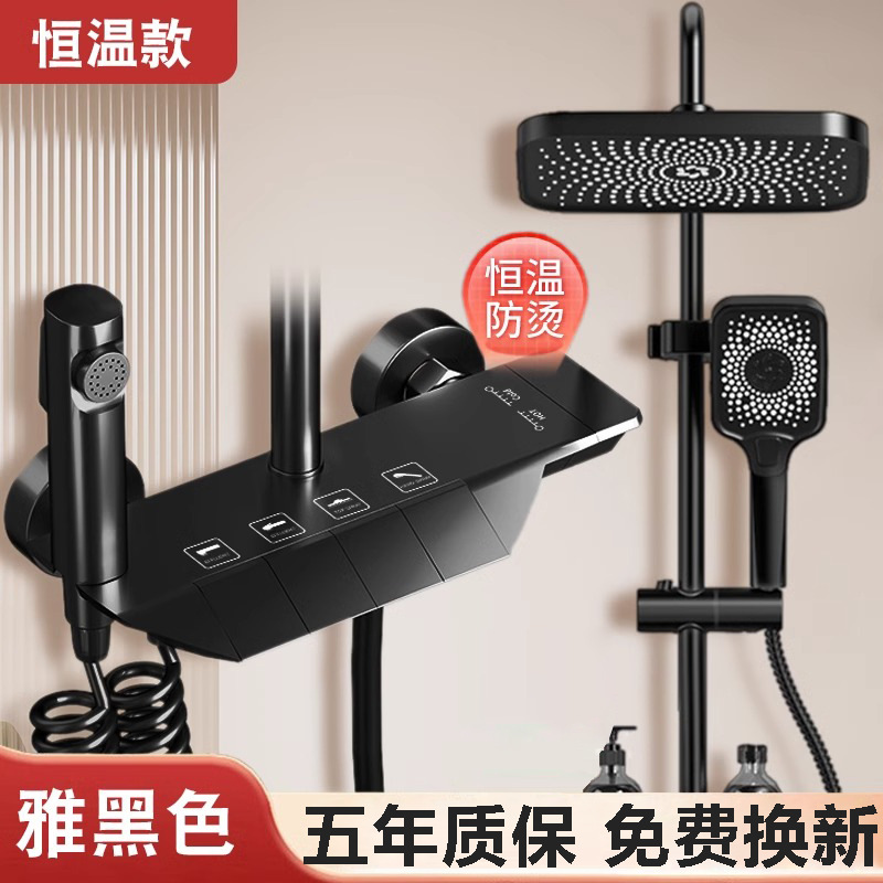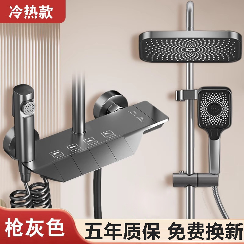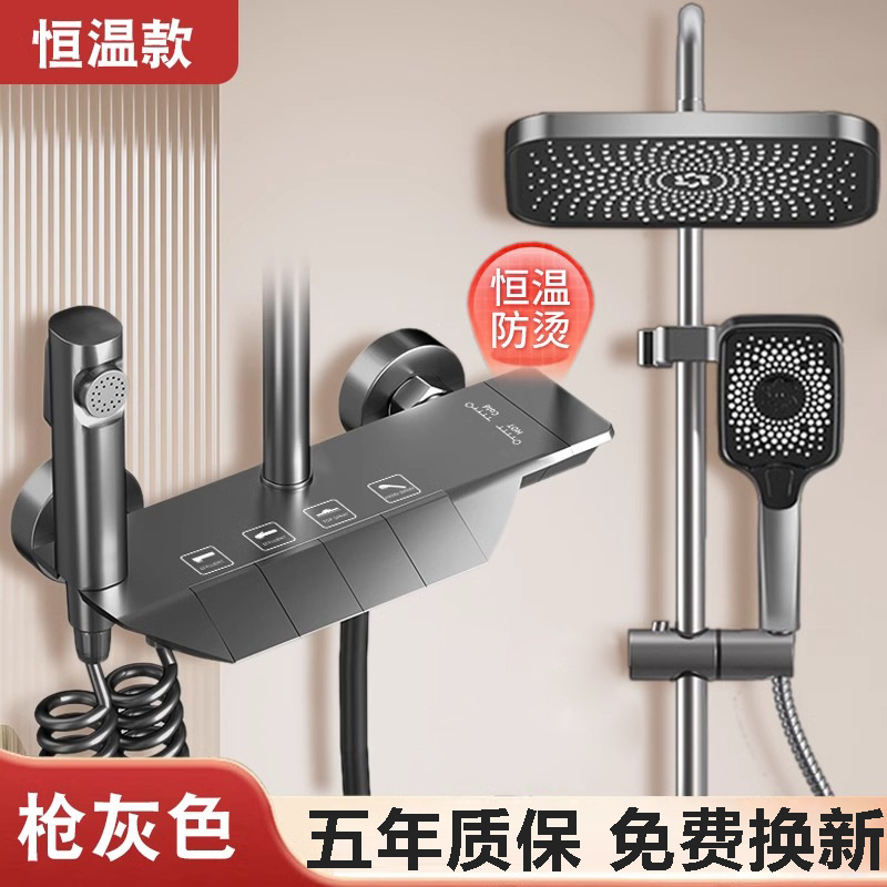 샤워 헤드 세트 구리 물 도금 총 회색 비 가압 일정한 온도 샤워 표면 장착 홈 욕실 화장실