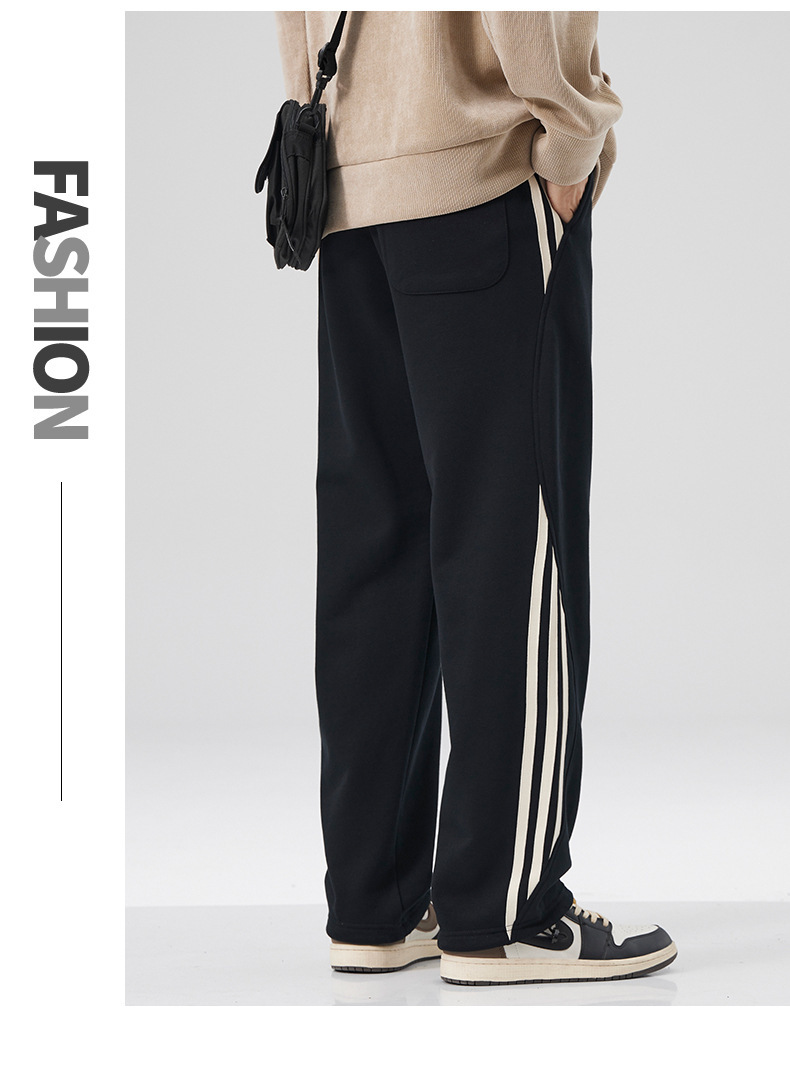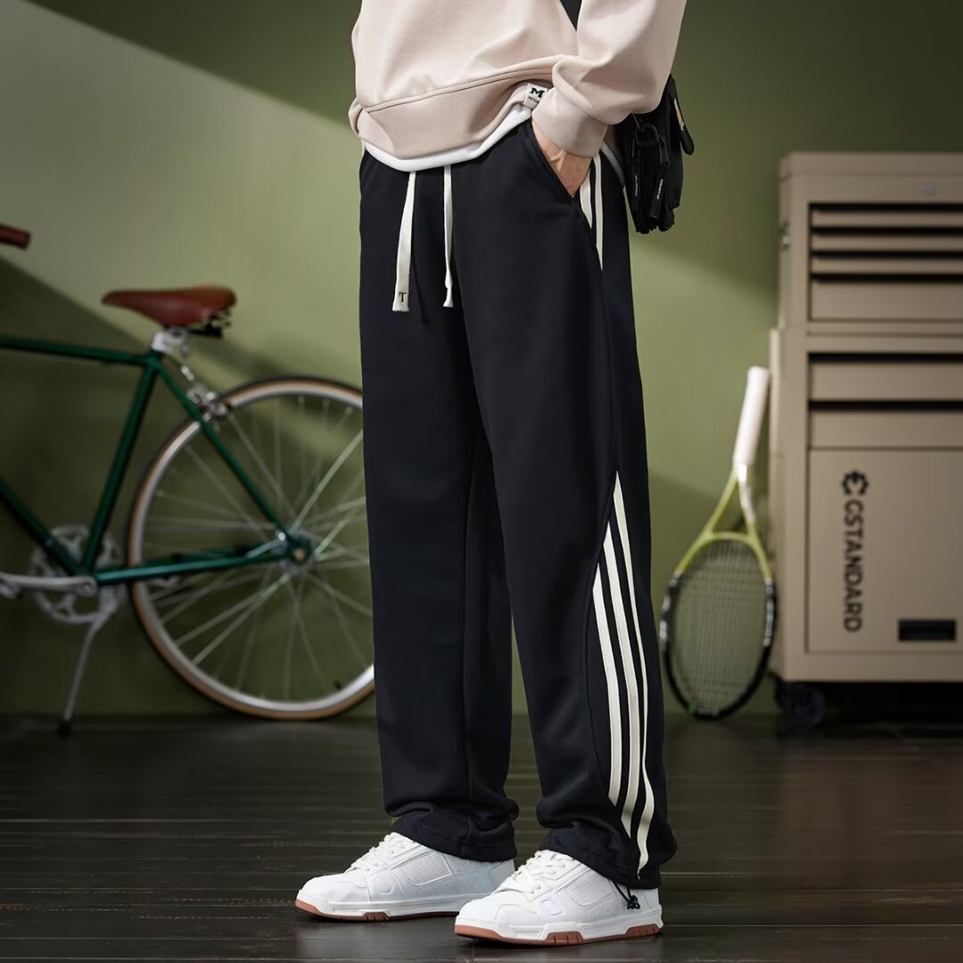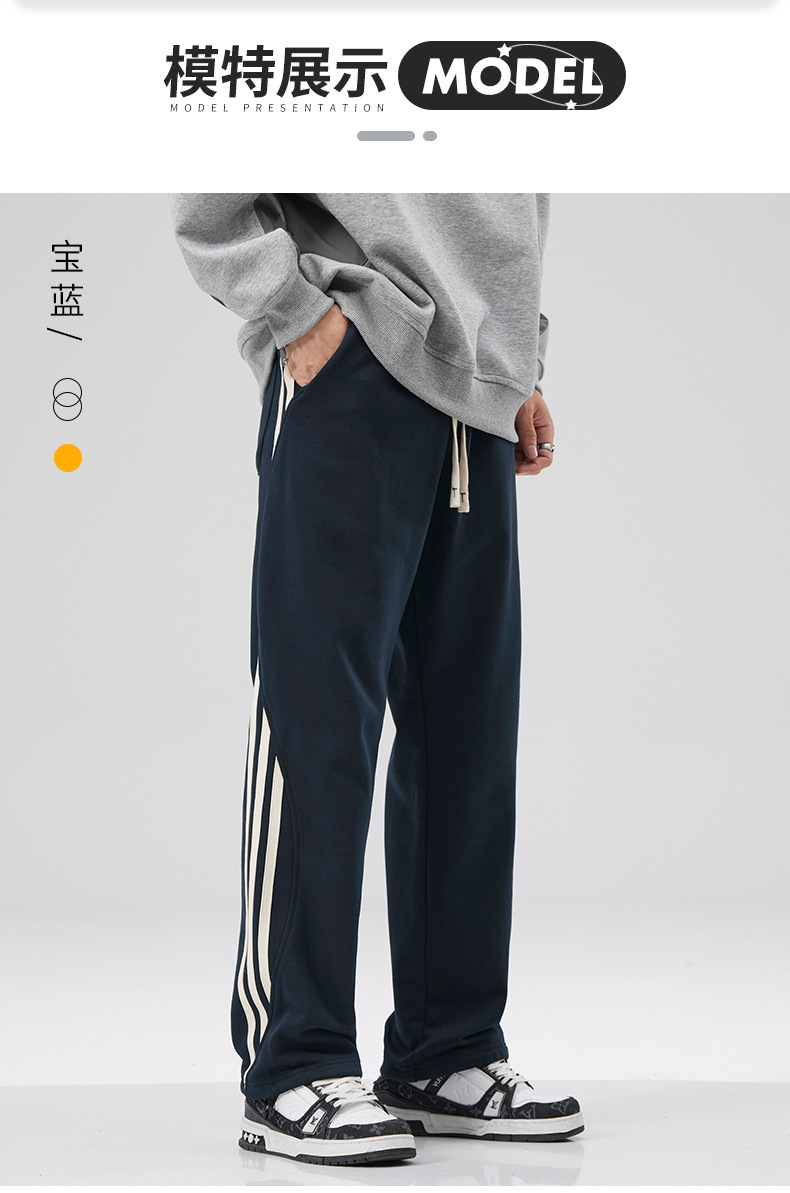 새로운 스트레이트 드레이핑 스웨트 팬츠 봄 남자 시즌 새로운 사이드 스트라이프 느슨한 올 매치 플러스 사이즈 스포츠 캐주얼 바지 남성 바지스토어 가기